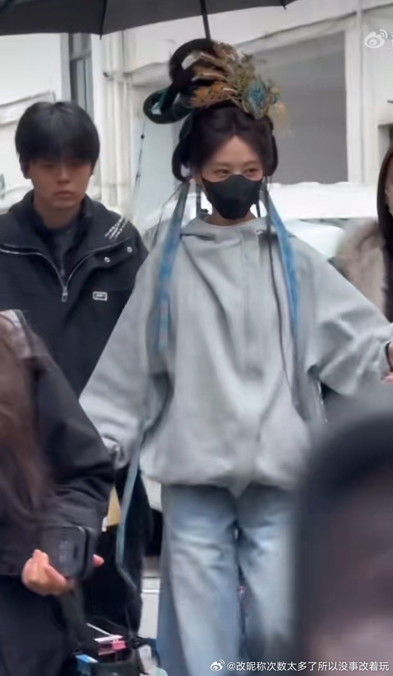 刘亦菲这条裤子挺养生,毕竟降温了肚脐眼必须护住啊