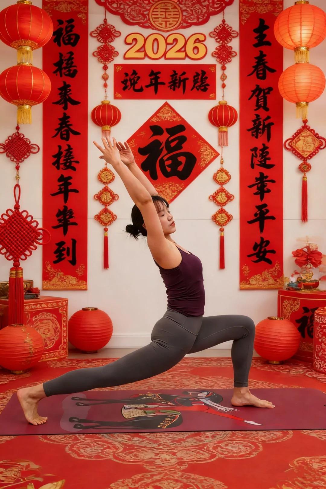 身着红韵练功服,于家中一方静土,让呼吸与晨光同频。流转的体式里,是岁月沉淀的舒展,也是四十加的从容底气。与女儿互为镜鉴,指尖相触时,是瑜伽的传承,更是母女的默契同频。 不必远赴山海,居家一隅,便将东方雅韵与运动力量揉碎在光影里。马年伊始,以柔韧敬岁月,以挺拔迎新春,在一呼一吸间,定格独属自己的新春精气神。