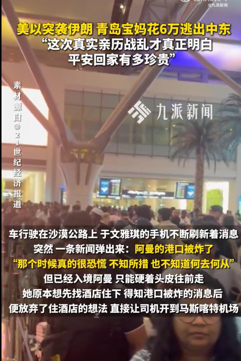 终于回国了!山东青岛,宝妈于文雅琪在50多个小时里,带着两个年幼的孩子和老母亲,亲历了航班取消、炮火惊魂、连夜奔袭,辗转迪拜、阿曼、孟加拉国,跨越4000多公里终于降落在昆明机场,踏上国土那一刻,这个坚强的母亲彻底卸下了防备,网友:这简直是教科书级别的生死突围。 原本定在2月28号带全家回青岛,结果临走那天手机狂震,航班取消了,中东局势升级,多哈、迪拜、阿布扎比的领空关闭,数万游客全被滞留,3月1号凌晨两点多,外面轰隆隆的爆炸声震得窗户发颤,紧接着全屋人的手机警报声刺耳,夜色里那动静恐怖得让人头皮发麻。 于文雅琪没敢耽搁,一把抓起护照和奶粉包,脑子里飞快盘算生路,她在三个同胞互助群里盯着消息,听有人提议去阿曼,天刚蒙蒙亮就包了辆私家车,带着老小直奔沙漠公路,车子在空旷的沙漠里飞驰,包车费花了4500迪拉姆,合人民币9000块。 走到半路,手机里突然弹出来新闻,说阿曼的港口也被炸了,那一刻于文雅琪心凉了半截,不知何去何从,但看着身后幼小的孩子,她咬死牙关没回头,让司机直接把车开到阿曼马斯喀特机场,到了柜台她跟工作人员反复交涉、死磕,终于抢到4张飞往孟加拉国达卡的票,又是25000多块砸了进去。 转机达卡时,她顾不上心疼之前打水漂的15000块飞曼谷的备用票,又掏出11000多块买了回昆明的最后航程,这一路折腾下来,光逃命的机票和车钱就花掉小6万,等她带着家人在昆明落地时,已经是3月2号傍晚6点,50多小时没合眼的她发回第一条信息:“我到了,终于回国了。” 网友们看完都坐不住了,有人感慨说这当妈的太冷静了,救了全家人的命,也有人感叹,关键时刻还是得靠咱同胞互助,这种路线共享简直是救命的活地图。 为这个宝妈感到由衷的高兴,这绝对是她一生中最危险的时刻,但她不仅自己带着老小跑了出来,还把自己实测跑通的路线无私分享给群里的滞留游客,真的让人动容,她帮的不仅仅是几个人,更是给了更多滞留者回家的希望。 给还没回来的朋友也提个醒,千万别在死胡同里耗着,像于女士这种“曲线回国”就是最稳的办法,别心疼那点机票钱和补偿,找个非交战区中转,哪怕多转几次,只要能动起来就有生机,时刻盯着互助群的最新路况,平安才是第一位的。 只要心不乱,回家的路就在脚下。