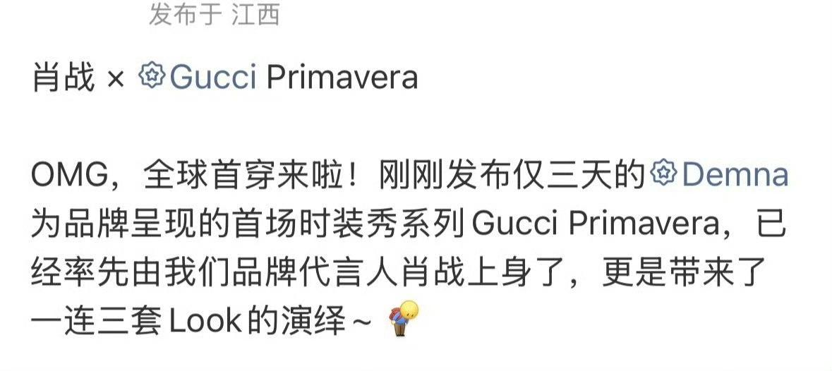 GucciPrimavera系列刚下秀场,就上了肖战的身[赞][赞][赞]