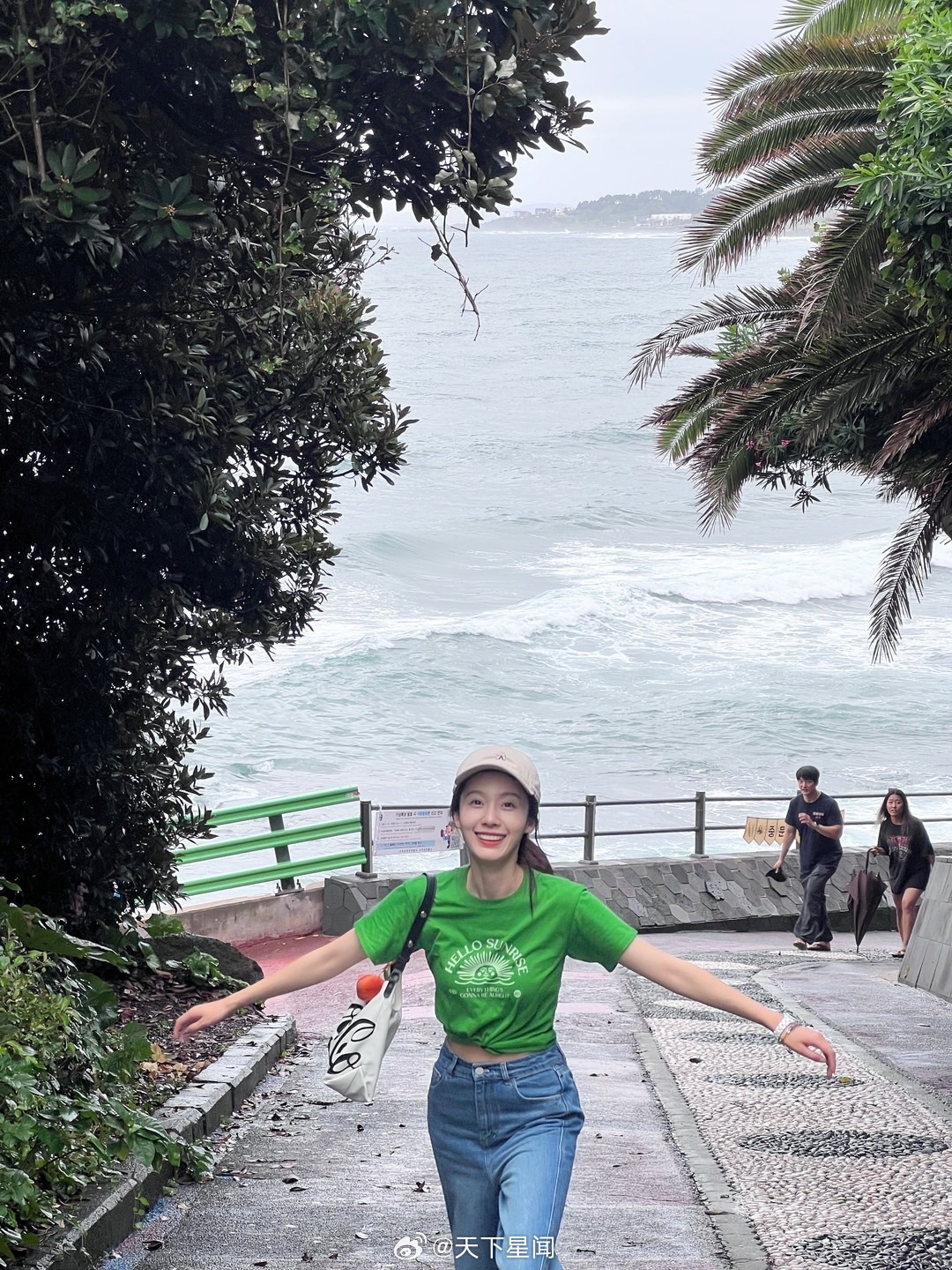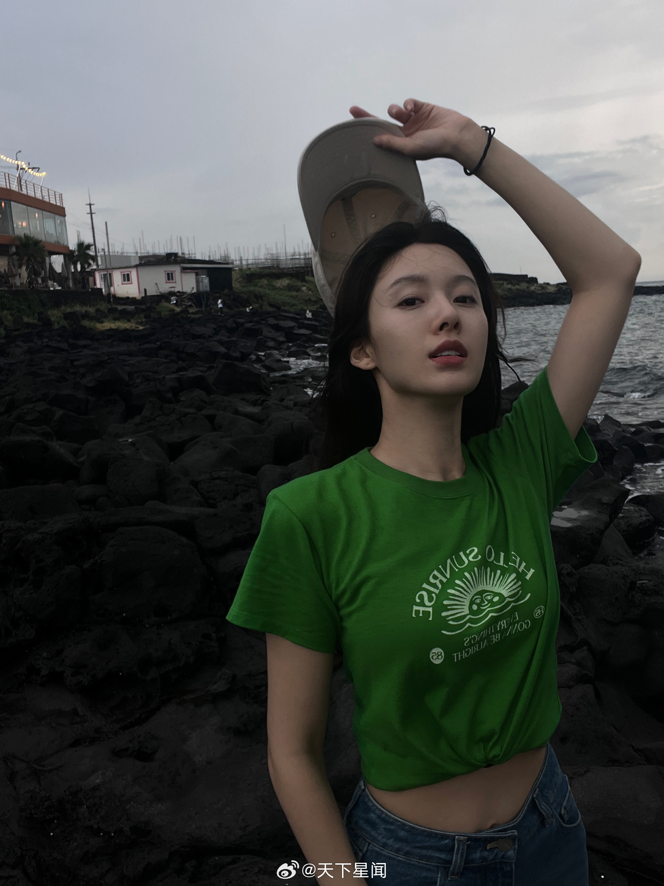 刘亦菲这条裤子挺养生,毕竟降温了肚脐眼必须护住啊
