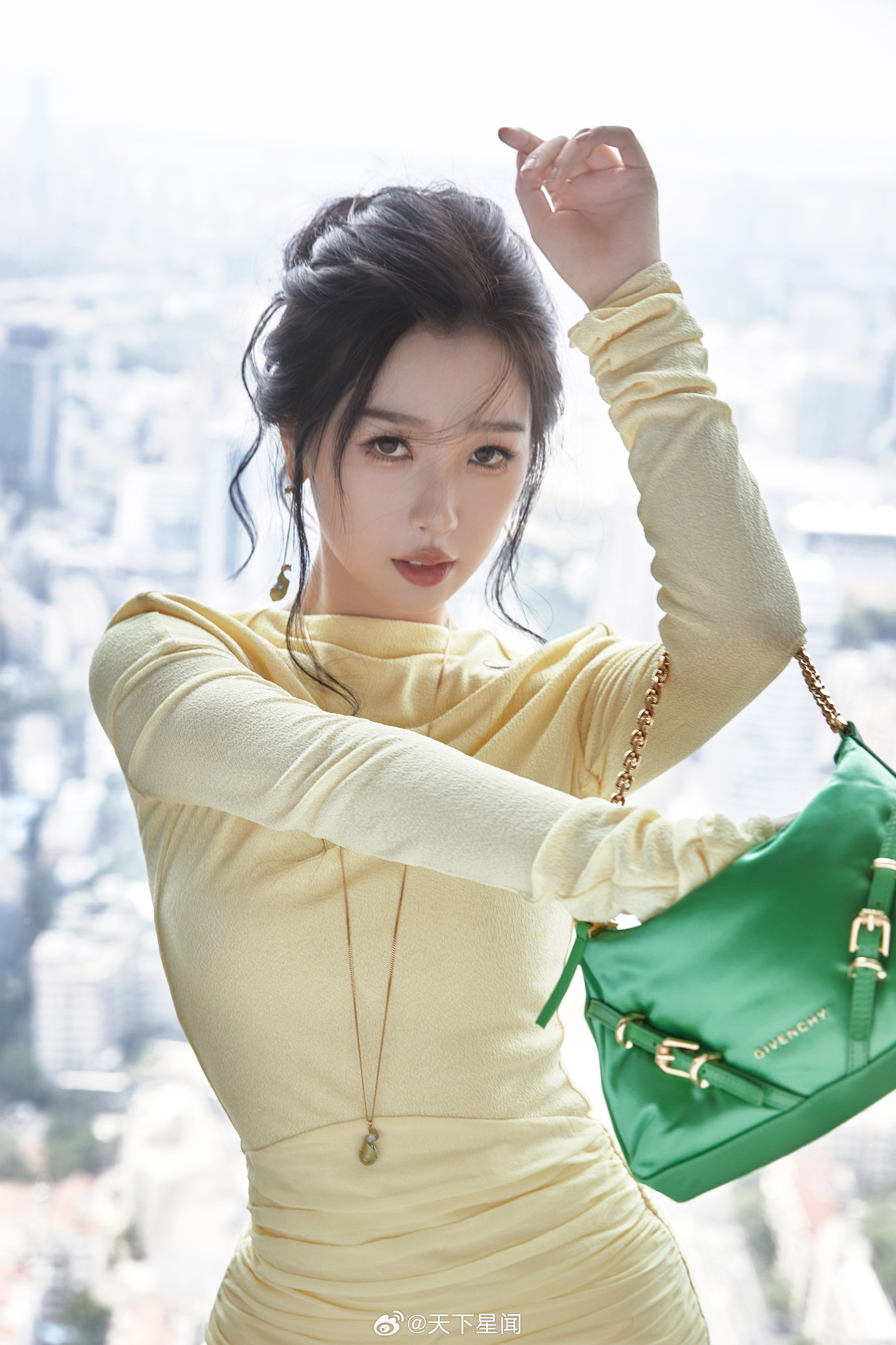 刘亦菲这条裤子挺养生,毕竟降温了肚脐眼必须护住啊