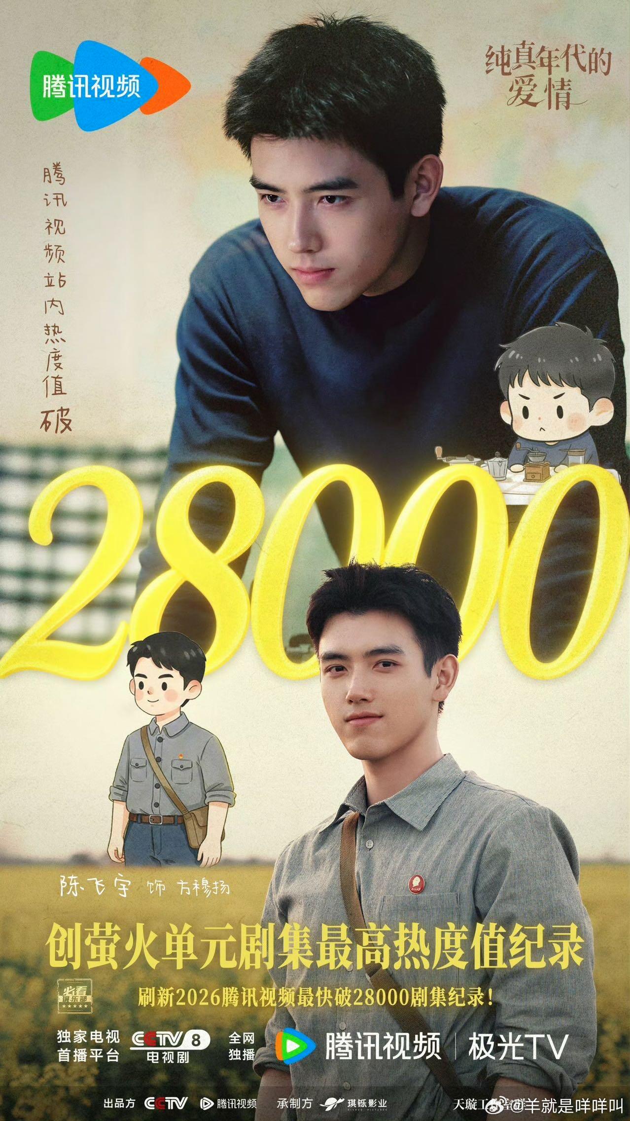 陈飞宇新剧央八暂年冠陈飞宇新剧《纯真年代的爱情》腾讯热度破28000,实时收视峰值破2.9% 口碑逆袭,阿瑟实绩有了,领跑00生了属于是!