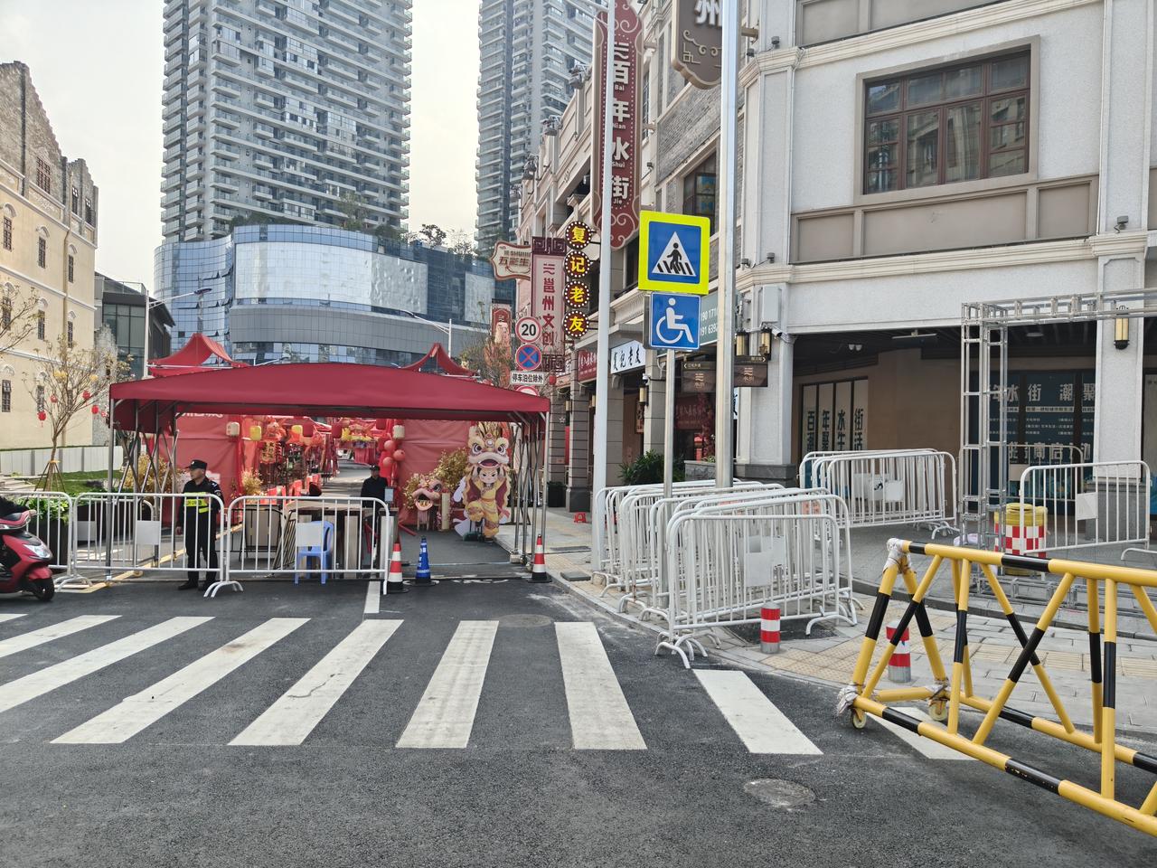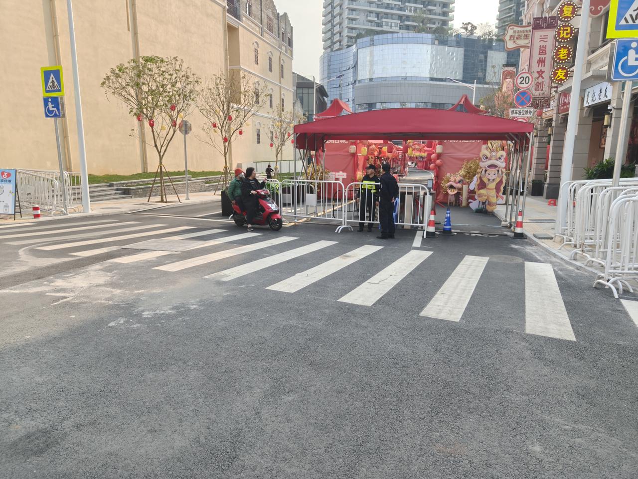 南宁水街新春灯会免费开放了?路口围挡关卡都被收起来了,没人来根本没人来,里面的一排夜市摊,九成摊位都没有开摊营业,里面的酒店和商家,纷纷在路口立着告示牌,进店消费或者住酒店不用买门票。这门票要是再收下去的话,估计商家们全都顶不住,到时这条新水街就被人唾弃了,那多可惜啊。 南宁水街灯会 南宁新水街