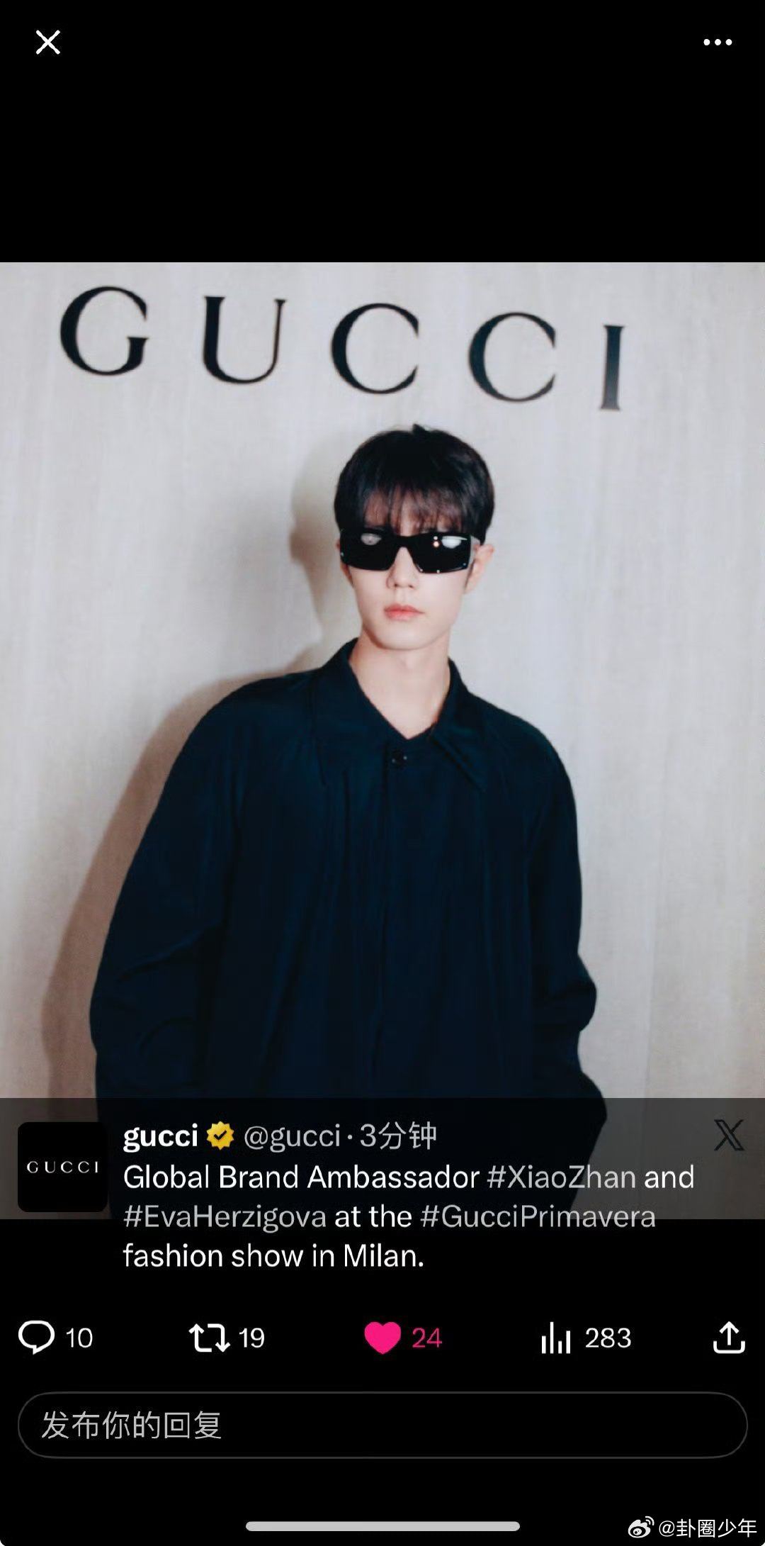 Gucci又发了肖战 顶奢的偏爱,从来直白又盛大,Gucci又发了肖战!!!