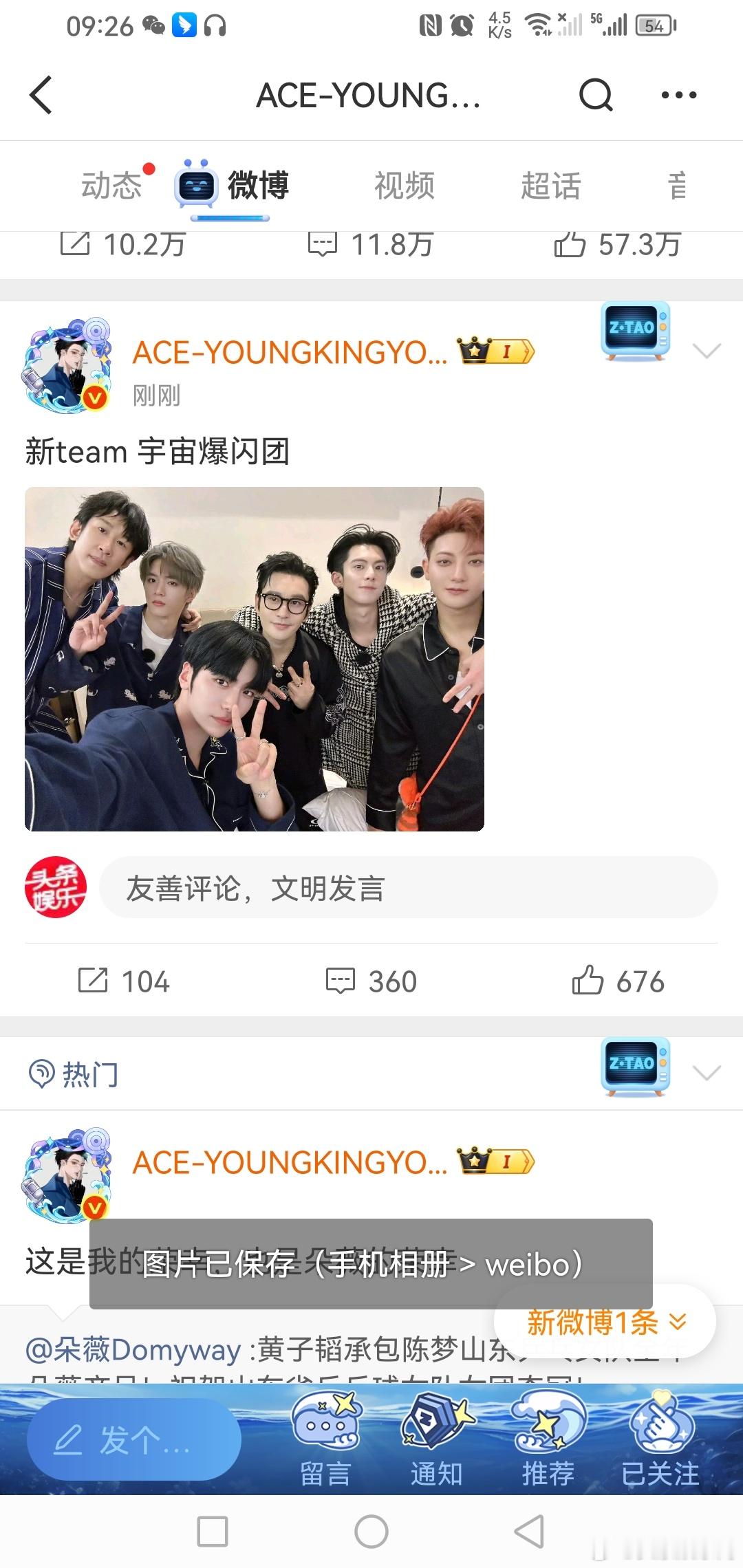 黄晓明成团第一张合照🈶宇宙爆闪团睡衣自拍来喽