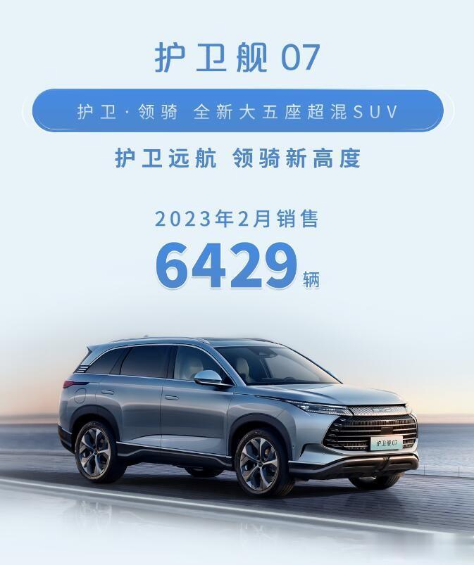 6429辆!护卫舰07领骑新高度!作为全新大五座超混中型SUV,比亚迪护卫舰07的1月销量是5043辆,2月份持续上涨到6429辆;作为一款中型SUV,护卫舰072023款车型的口碑得分是4.52分,不愧是比亚迪护卫·领骑的巅峰之作,护卫远航,领骑新高度!