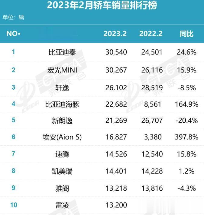 30540辆!历史性突破!比亚迪秦拿到2月轿车销量排行榜冠军!在乘联会官宣的2月轿车销量排行榜当中,冠军是同比增长24.6%的比亚迪秦,销量达到了破3万辆的30540辆,这是比亚迪秦的第一个月度销量冠军,可谓取得了历史性的突破!