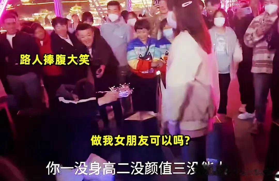 甘肃一男子在大街上表白自己心仪的女生当场被拒,感觉女生是人间清醒的,对于一个女生来说,选男朋友一定不要选死缠烂打的人,最后都不会有好果子吃的,特别是没有能力的男生,如果一个女生接受一个没有能力的男生,今后的生活显而易见,当众拒绝是对的。 这个男的以为当街表白自己喜欢的人,别人就会答应你,就会给你机会,偶像剧看多了吧?不要把你的一厢情愿看作别人会给你机会。把你这种当街表白的勇气拿去努力提升自己才是王道。 爱情是相互的,看对眼的人哪怕对方有再多的缺点也会欣然接受。