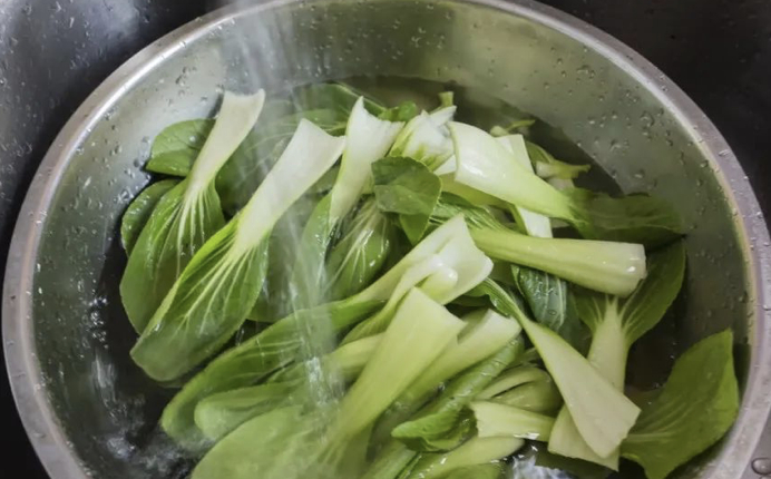 ①先用开水焯一下,能够减少草酸等妨碍钙吸收的物质;焯水时,提前在锅中加入少量的盐和油,可以使青菜保持翠绿,不会发黑。