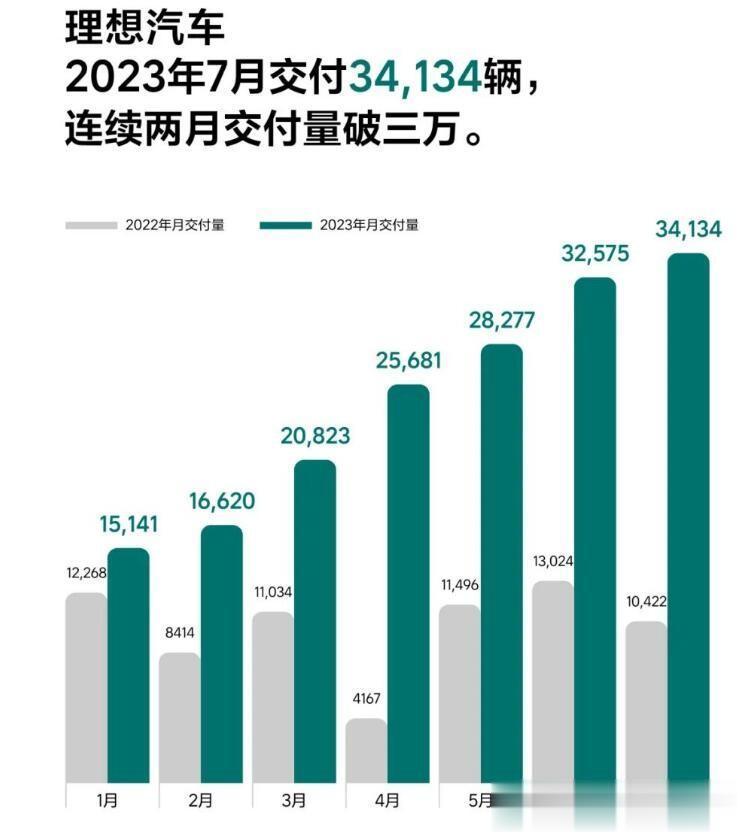 34134辆!理想汽车再破3万辆大关!根据理想汽车8月1日官媒消息,理想汽车的7月交付量达到了34134辆,同比增长227.5%;继6月份突破3万辆大关之后,理想汽车再次站到了3万辆门槛之上;理想汽车前7个月的累计交付量达到了173251辆,在造车新势力赛道上,处于领先地位!