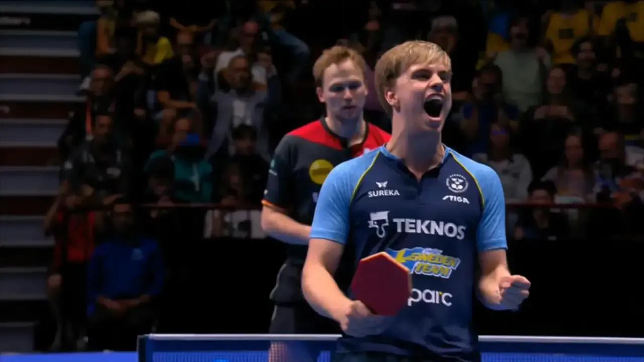 乒乓球欧锦赛瑞典3:1大胜德国 时隔二十一年再捧冠军杯 昨日晚间2023欧洲团体锦标赛男团决赛结束,瑞典3-1战胜德国斩获冠军! 第一盘,特鲁斯·莫雷加德3-0贝内迪克特·杜达。三局比分依次为:11-4,11-8,14-12。 第二盘,马蒂亚斯·法尔克2-3蒂姆·波尔,五局比分依次为:11-8,12-10,8-11,7-11,10-12。 第三盘,克里斯蒂安·卡尔森3-2凯·斯达姆珀 ,五局比分依次为:11-5,7-11,11-3,11-13,11-4。 第四盘,特鲁斯·莫雷加德3-2蒂姆·波尔,五局比分依次为:11-6,11-8,4-11,6-11,11-6。 这是瑞典男队时隔21年,重夺欧锦赛男团冠军!