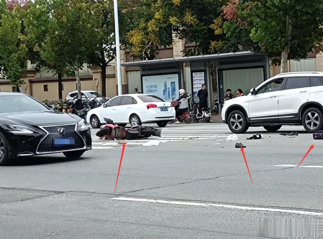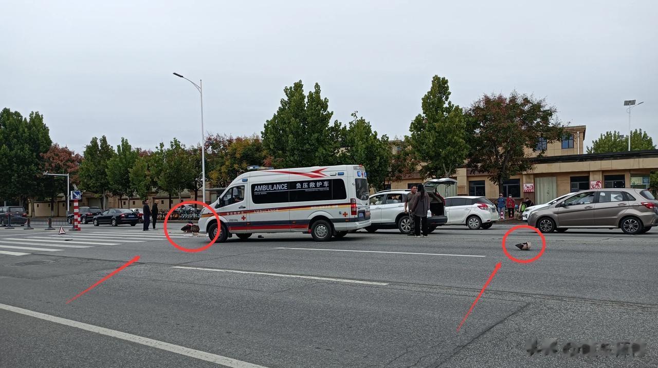 【真不知道意外和明天哪个先到?】一场车祸!毁掉的是两个家庭!“宁停三分、不抢一秒”真的不是儿戏话!现场散落的书包、头盔以及汽车弹出的气囊,无不间接说明了撞击时候的车速有多么的快!如果是电动车横穿斑马线,汽车司机能不能看见呢?看见了能不能减减速呢?再者说了,汽车经过没有红绿灯控制斑马线的时候,就不能减减速么?怎么就那么巧,就装上了呢?救护车已经把受伤的人拉走了,幸亏最近的医院只有几百米远,但愿只是皮外伤!车祸真的猛于虎,开车上路一定要小心、小心、再小心!#妙笔生花创作挑战##交规要遵循# #今天您礼让了吗#
