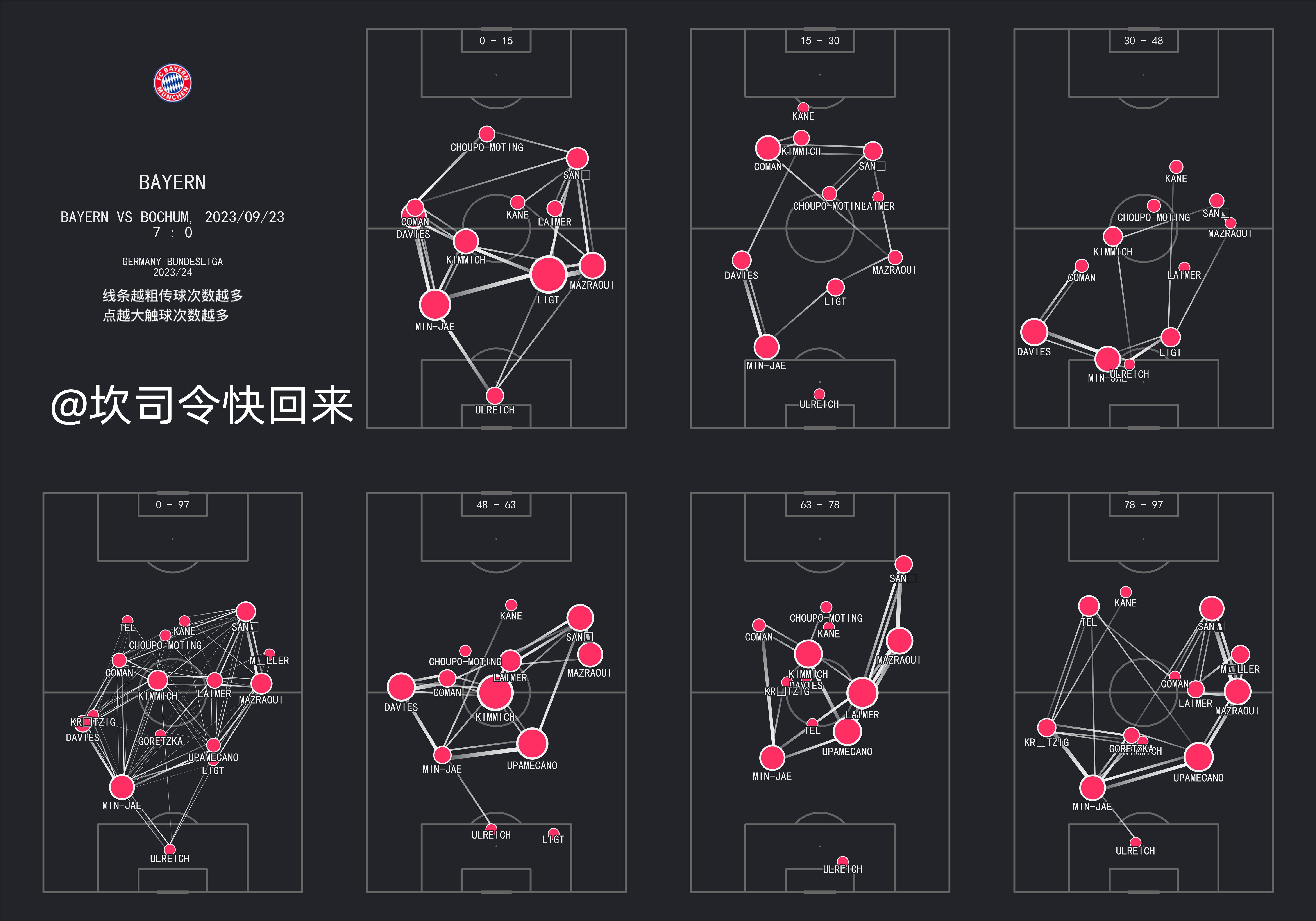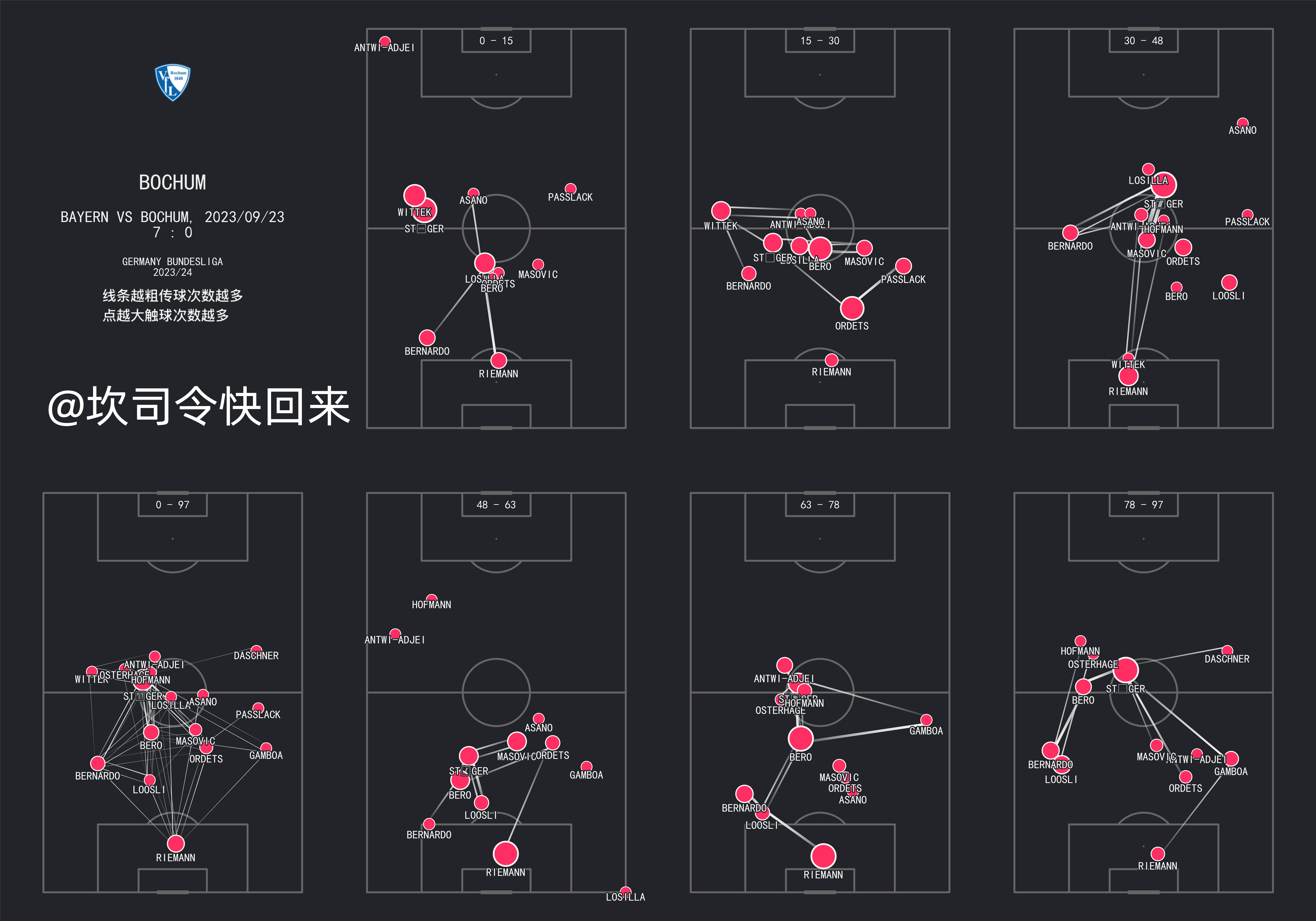 拜仁慕尼黑vs波鸿,多特蒙德vs沃尔夫斯堡,不同时段的passmap