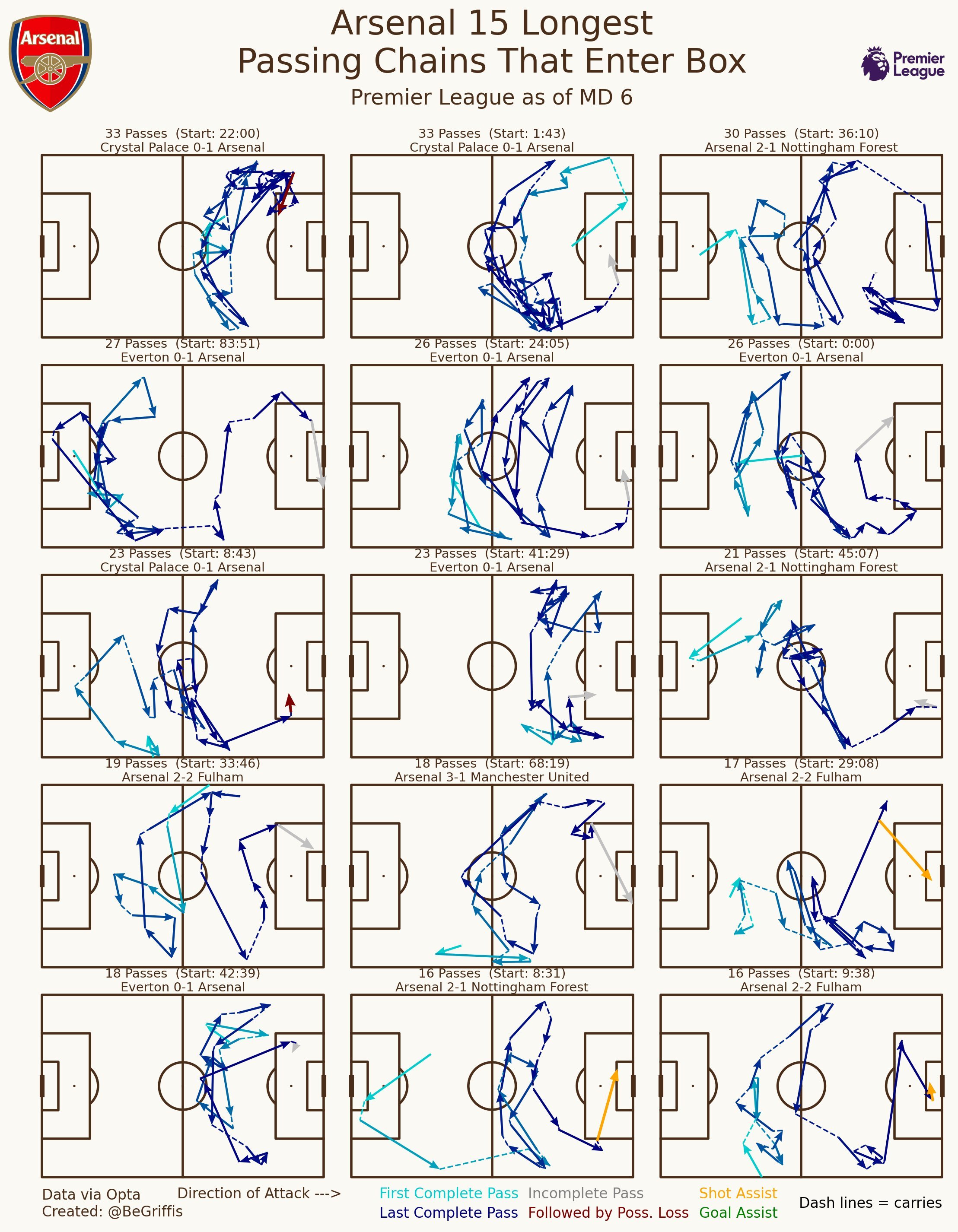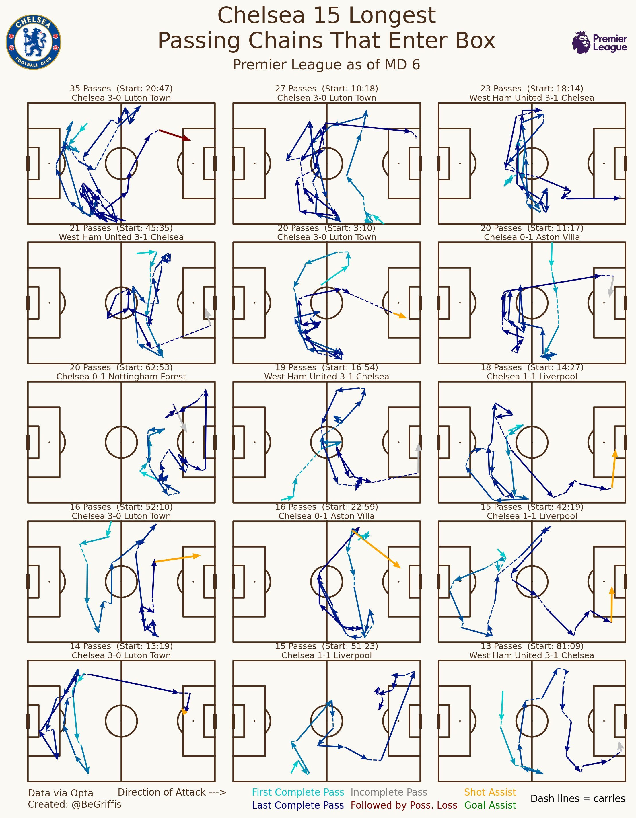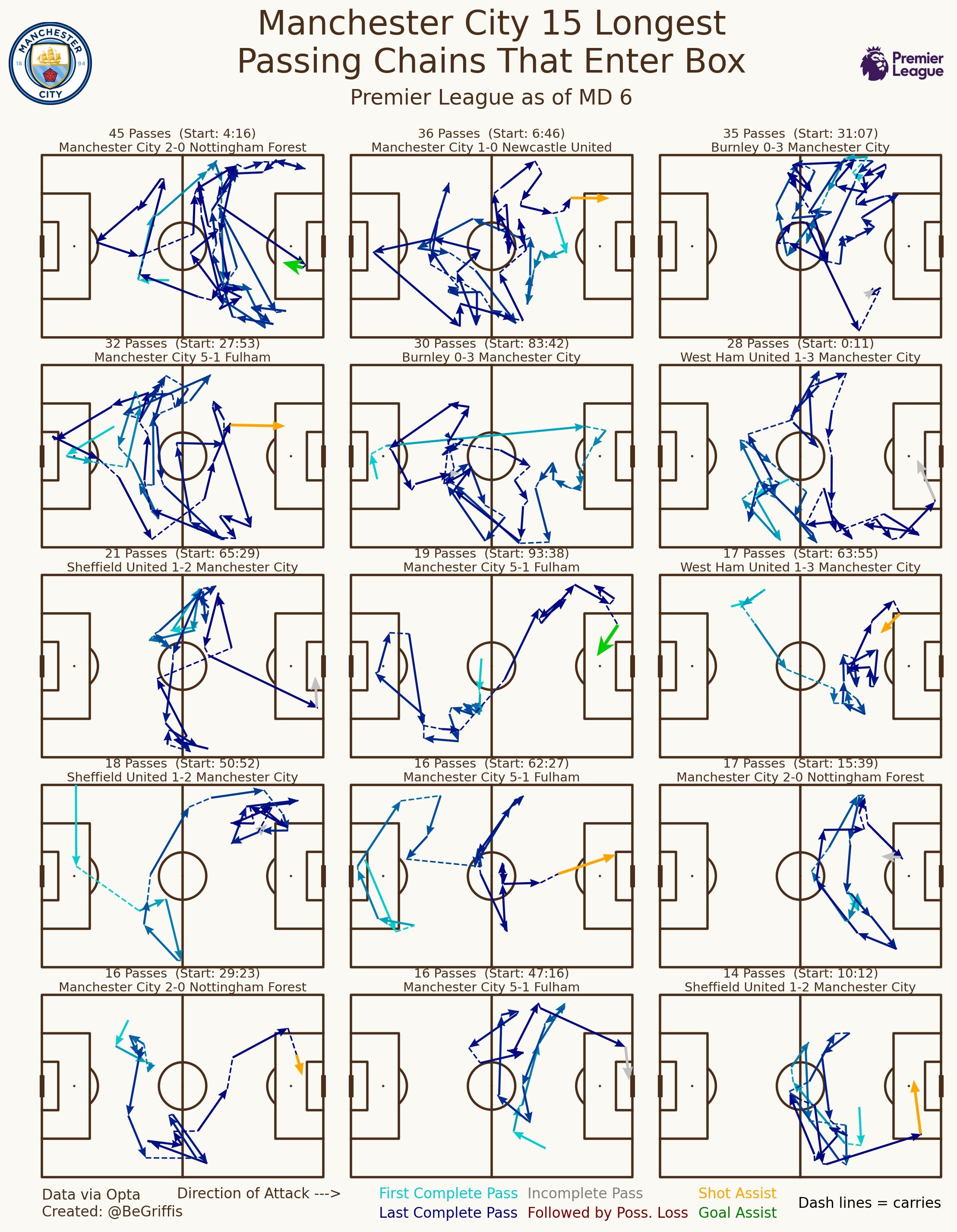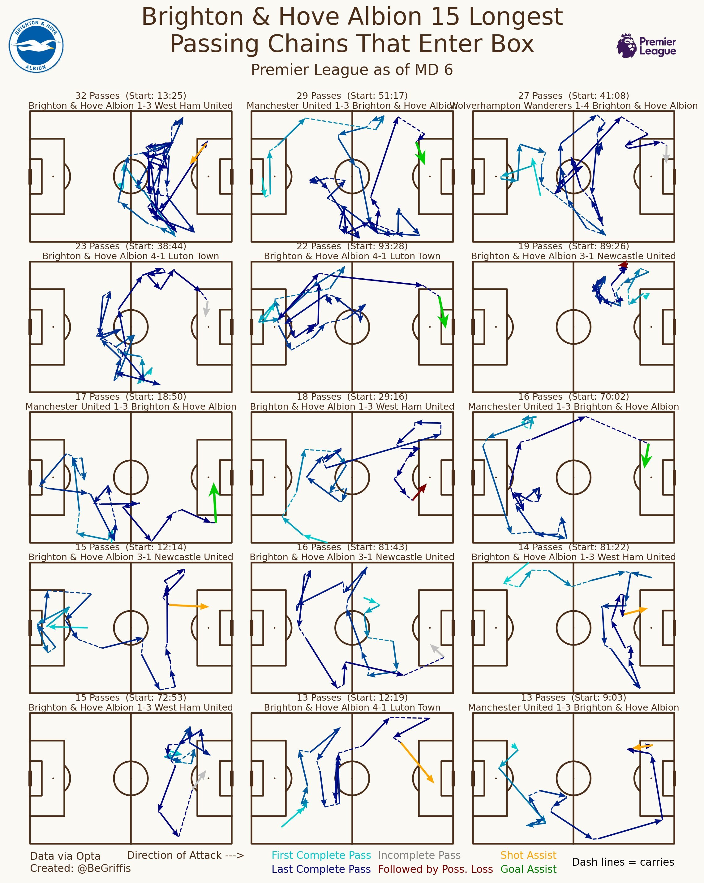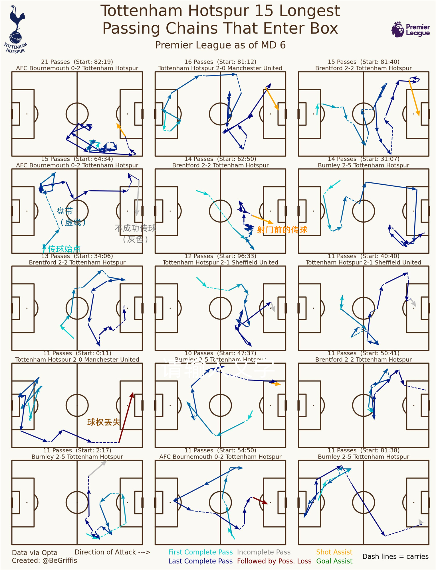 图三是曼城的,8次形成射门(2个进球) 其中布莱顿的15次传球最多的控球权里制造了4个进球。