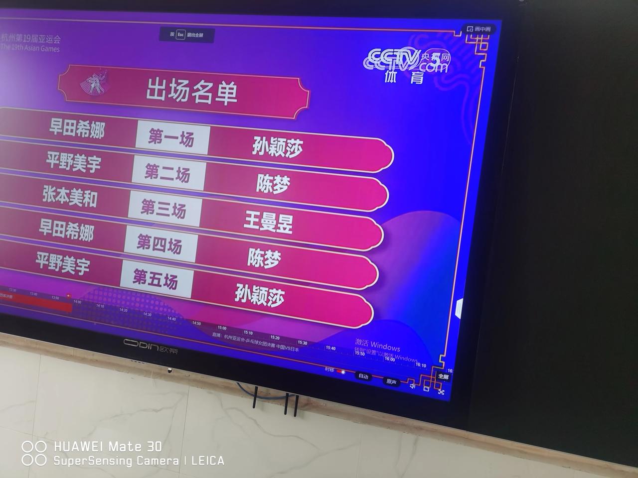亚运会女团决赛火药味十足 孙颖莎对阵早田希娜获得开门红 9月26日下午14:00,杭州亚运会女团决赛开打,第一场首局孙颖莎对阵早田希娜,孙颖莎发球,1:0,2:0,3:0,3:1,4:1,5:1,5:2,6:2,7:2,7:3,8:3,8:4,9:4,9:5,10:5,10:6,孙颖莎拿下第一局,真是好样的,加油加油加油,莎莎加油,希望你3:0打败早田希娜。