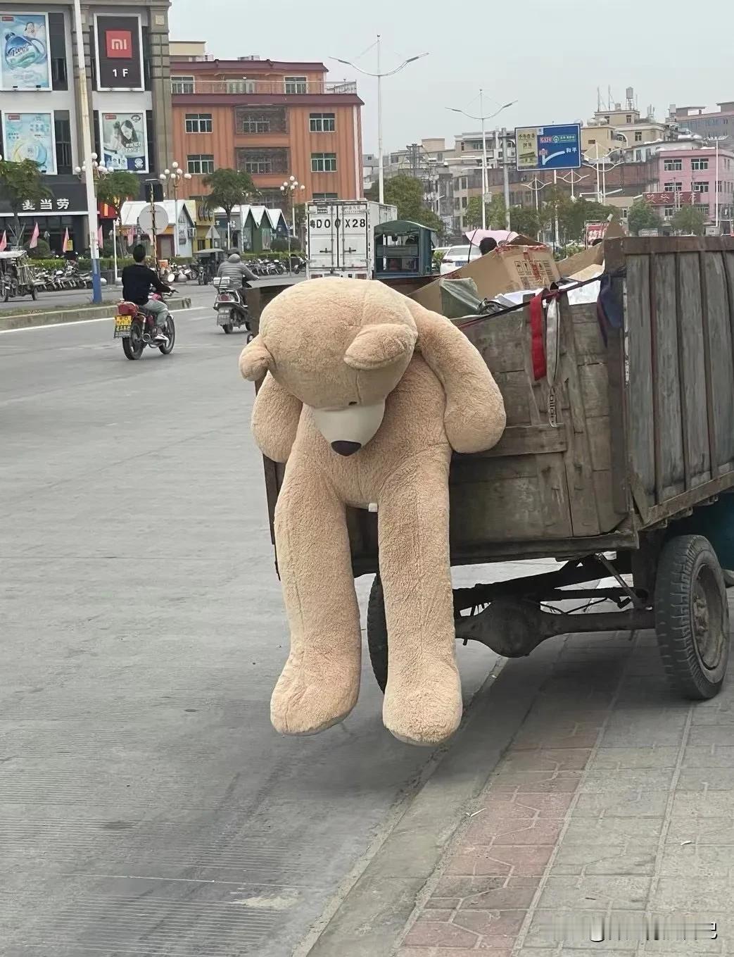 接儿子回家的路上,看到一只被主人丢弃的小熊,垂头丧气的被绑在垃圾车上。 儿子望着小熊难过的说:“妈妈,小熊是不是不听话,所以被它妈妈丢掉了?”