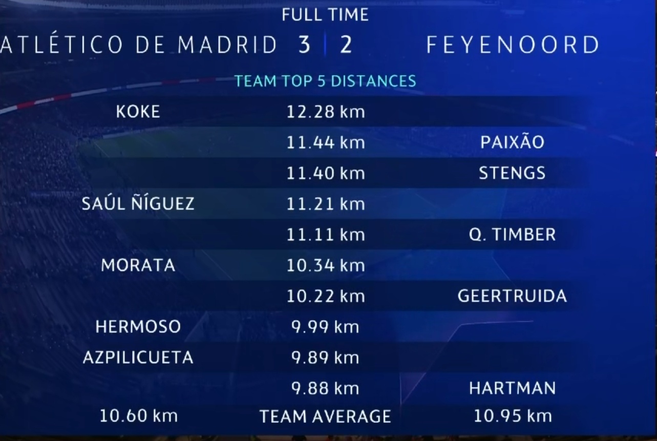 费耶诺德(2.47)的xG值差不多是马竞(0.89)的3倍,在没有点球的情况下奥布拉克的丢球期望值都高达2.98。