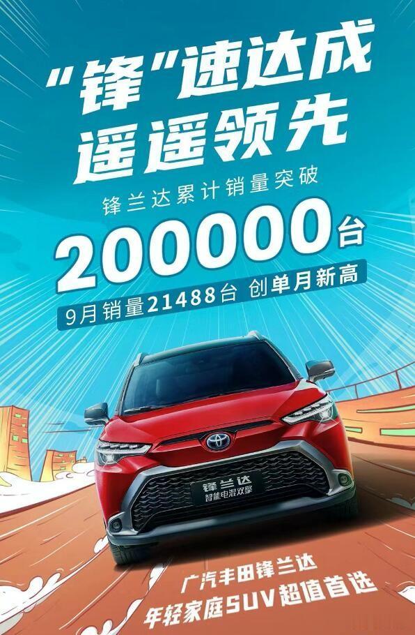 21488辆!广汽丰田锋兰达再创历史新高!金九真的很给力,同比增长113%,累计销量达到了20万辆!作为年轻家庭SUV的超值首选,广汽丰田锋兰达智电双擎正式上市,新车共计推出4款车型,搭载了第五代THS混动系统,带来更出色的表现以及更低的油耗表现。#秋日生活打卡季#