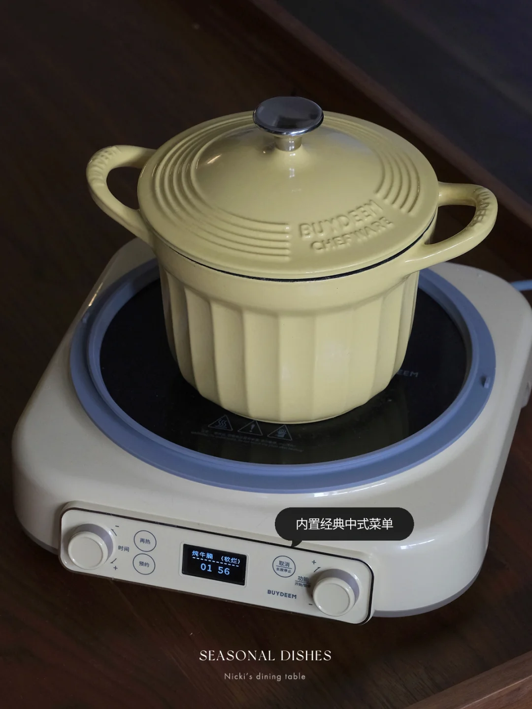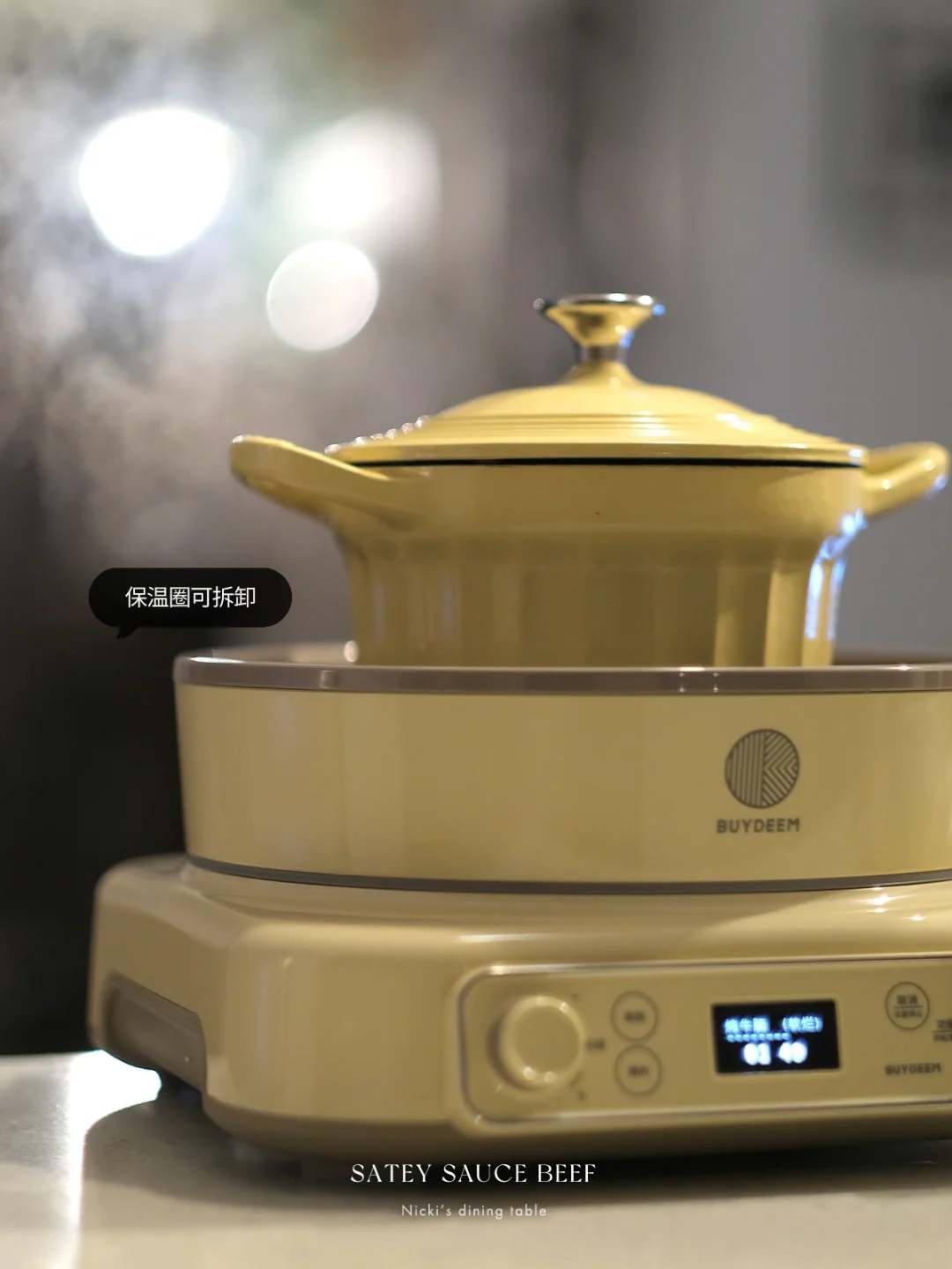 •将牛肉牛筋放入锅中,加入纯净水,盖上盖子,电磁炉选择“炖牛腩”这一档,还可以根据自己的口味调整软糯程度,差不多炖煮1个半小时。