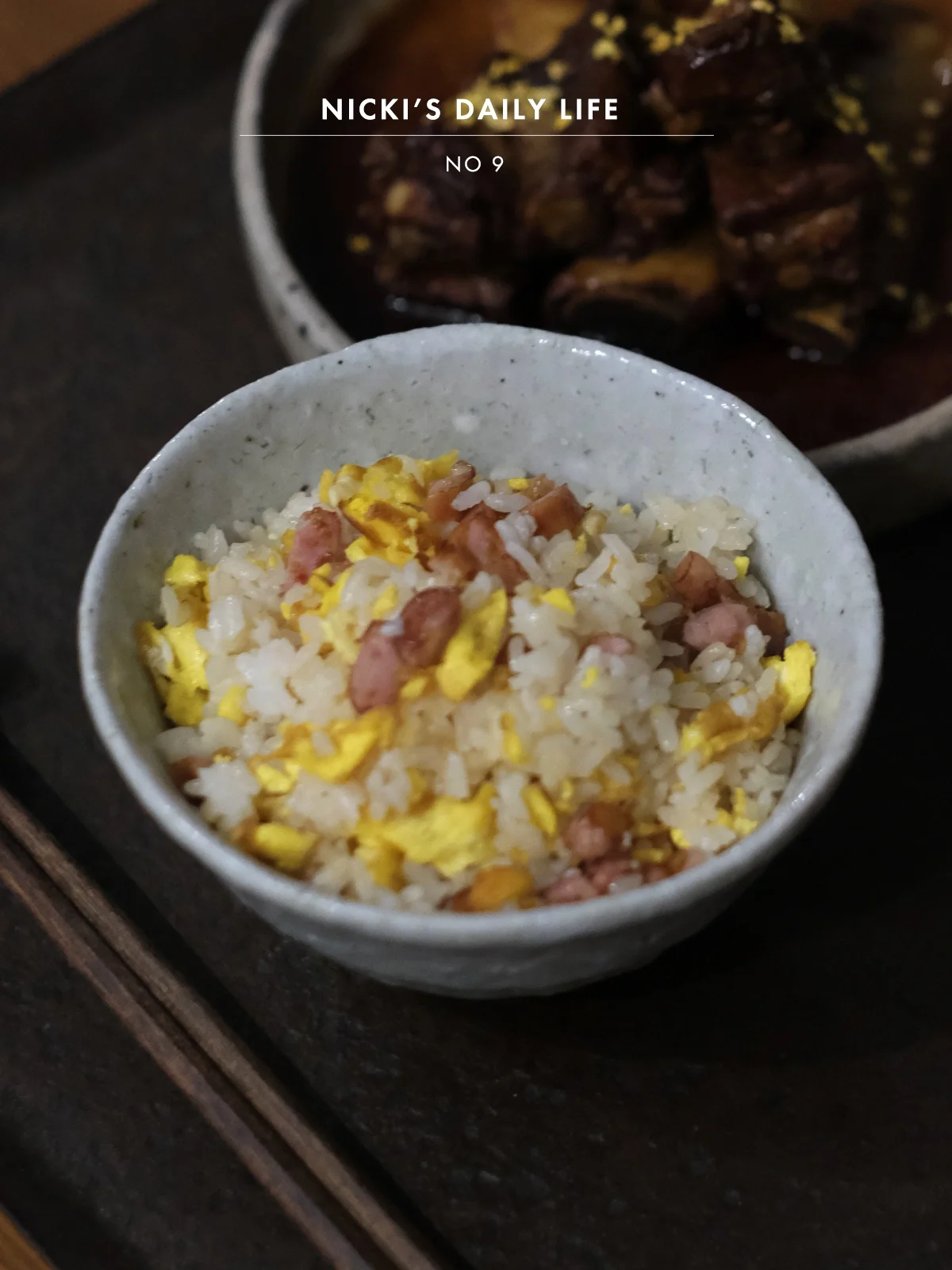 🥗晚餐:香肠鸡蛋炒饭+桂花梅子酱排骨+桂香乌龙