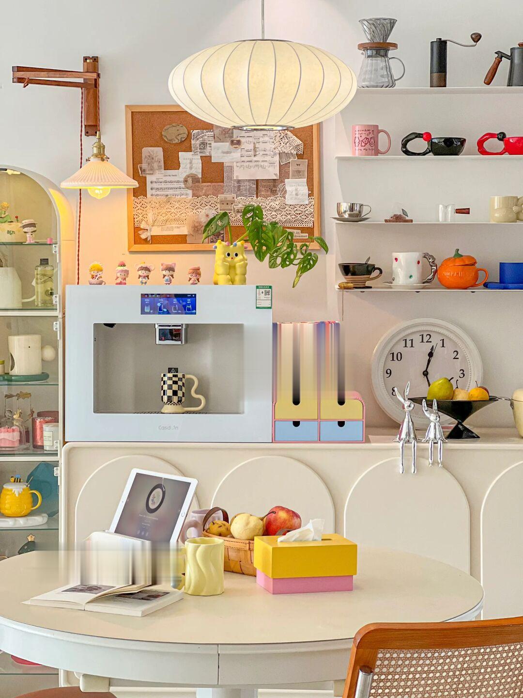 2021年有了属于自己的房子,建面116平三居室 和家属从设计到装修亲力亲为 如今家也愈发的温馨浪漫🏠💕 - ▪开间长9m、宽4m,通刷纯白色乳胶漆 ▪回形吊顶,四周下吊33cm,走了一圈面宽11.3cm的复古虎头线 ▪客厅餐厅厨房做了一体设计,小户型更显大 ▪餐边柜长1.6m、高0.9m,倒圆边造型好看又实用,桌面上摆满了我对生活的热爱🥰 · 🫖因为总水路经过餐厅,所以在餐边柜后预留了出水口,搭配凯度Z9S直饮机让家变得更美了!白色的机身和奶油风的家好搭,在餐厅吃饭或办公时喝水就方便多了,每次提前定好水量,3s出热水,即滤即饮,不用浪费时间在一旁干等着 · 🍋8档水温随意设置,热水♨or冰水🧊都能一键操作。家属喜欢的柠檬水、咖啡,我喜欢的花茶、奶茶…满足多种冲泡和饮水量需求,日常使用真的太方便了~ · 🥛自带RO反渗透滤芯让水质经过多层精滤,还会通过屏幕进行实时监测,让饮水更健康,长期使用也安心 · 💦它可以一键滤芯自清洁,有效延长滤芯的使用周期,省心又省钱。因为具备一级水效标识,可以减少废水产生,节能又环保♻ - 入住家已经两年多了,对家的感情也越来越深 愿我们都能和心爱的人幸福的生活在温馨的家🏠