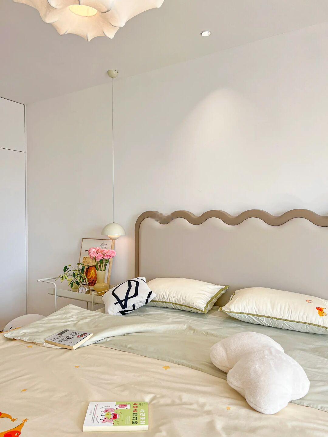▫️有一张舒服的床才会有健康的睡眠和好身体,硬装结束家属就把我心动已久的涟漪床搬回了家🛏️。番茄设计出品家的高床头设计,个性又别致,波浪造型灵动可爱😍