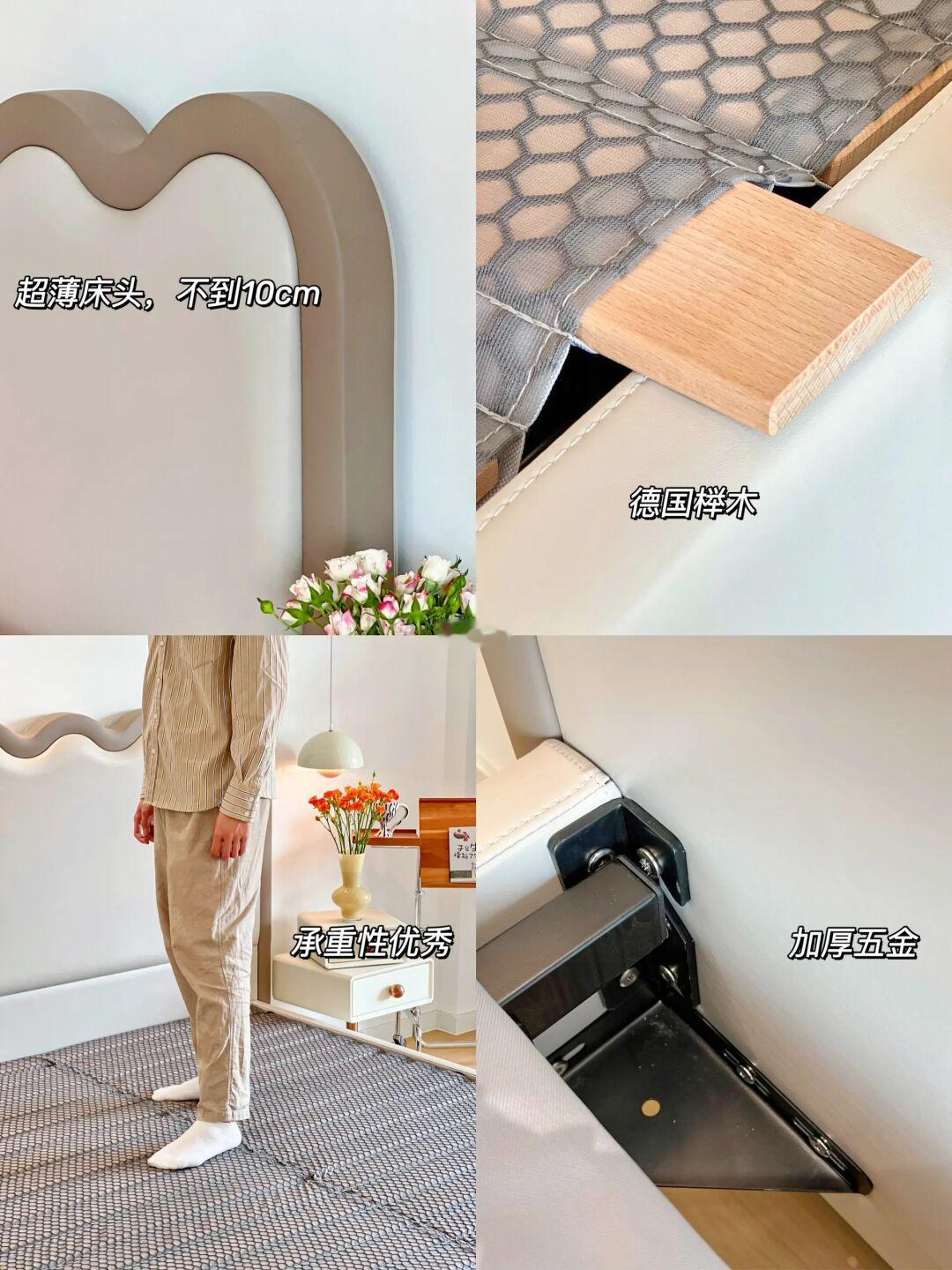 ▫️为了搭配奶油风卧室,定制了床的配色,边框是赭石,中间是荼白,搭配在一起太温柔啦