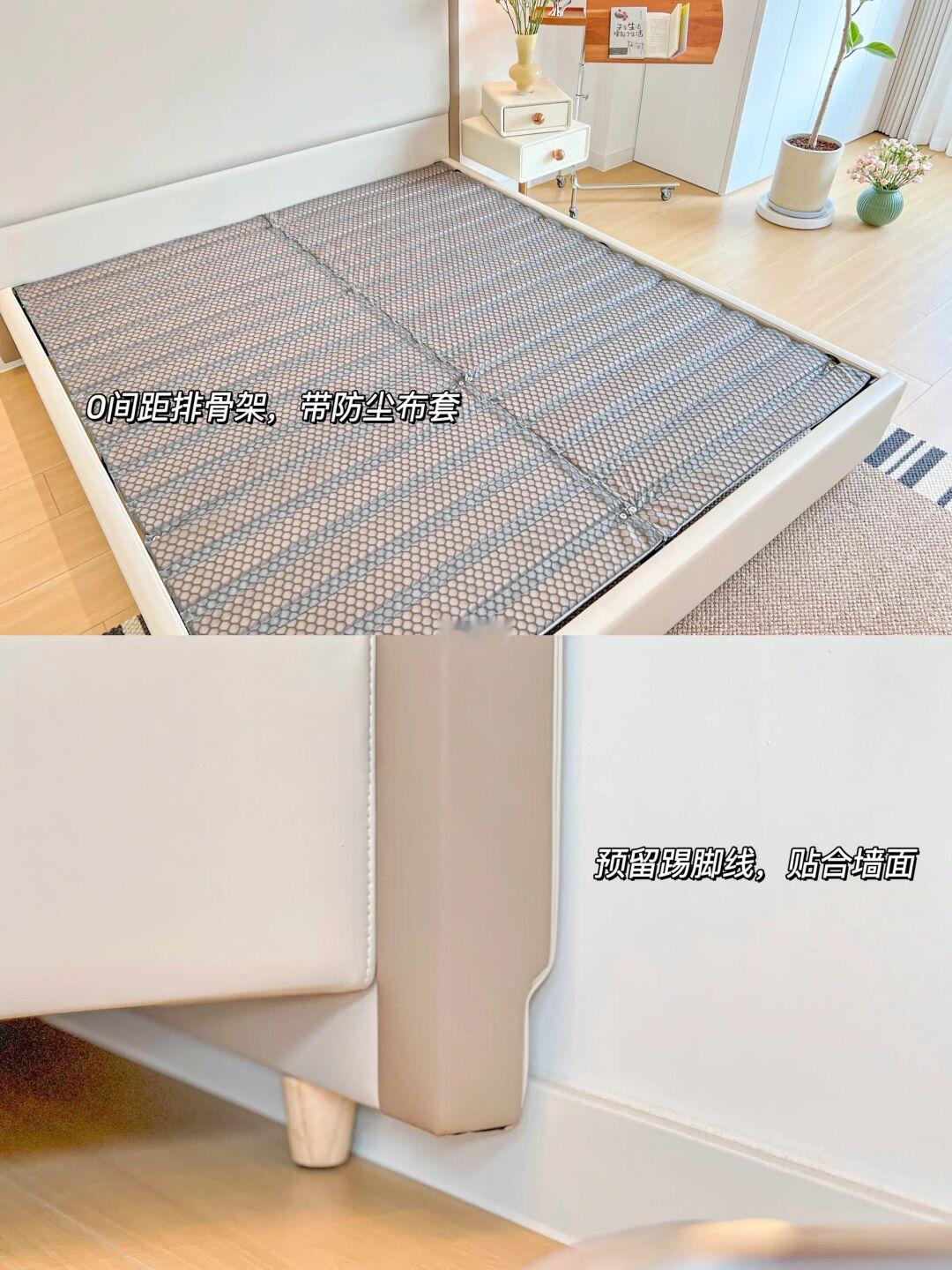 ▫️排骨架是进口榉木的,有双层的防尘罩包裹实现“0”间距承托,不仅可以保护床垫,还防止移位,安心又省心