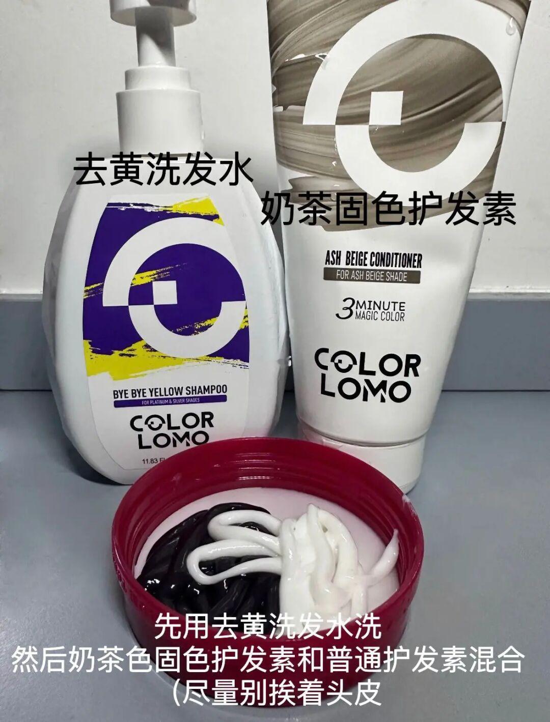 虽然这个颜色真的显白又混血但是颜色掉色也太快了吧… 有很多姐妹一直问我怎么固色!终于来啦!! 平时护理是用卡洛美去黄洗发水搭配奶茶色固色护发素(和普通护发素混合 不会再变成精神黄而且妥妥还原奶茶灰棕色啦