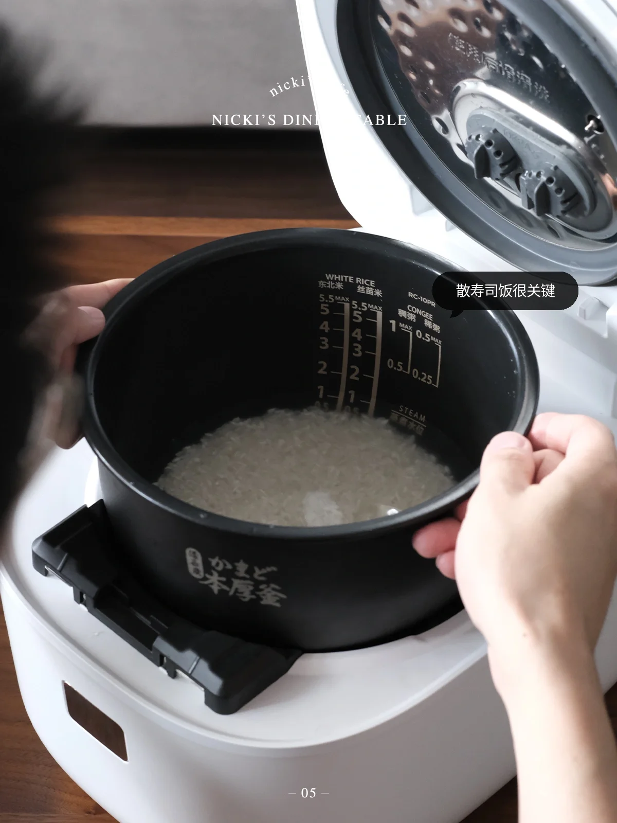 散寿司饭对于米饭的煮制很讲究,淘米的时候要多淘几遍,洗去米表面多余的粉质,煮饭的水不要用自来水,我一般都会用矿泉水。电饭煲也很关键,直接选择东芝小吐司鲜饭煲“寿司饭”模式,它可以通过压力烹煮达到103度沸点,相比普通电饭煲100度的沸点来说,它将更多热量传递到米芯,煮出来的米饭更有粘性也激发出了更多的甜味。根据米的不同有不同选项烹煮模式,“快速饭”只需要25分钟,对于上班族来说这一点太吸引人。