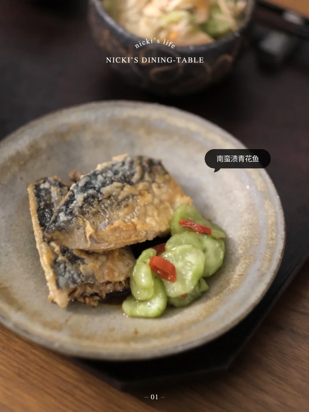 ❕南蛮汁腌制青花鱼的同时,也可以放一些黄瓜片或者洋葱丝一起腌制。
