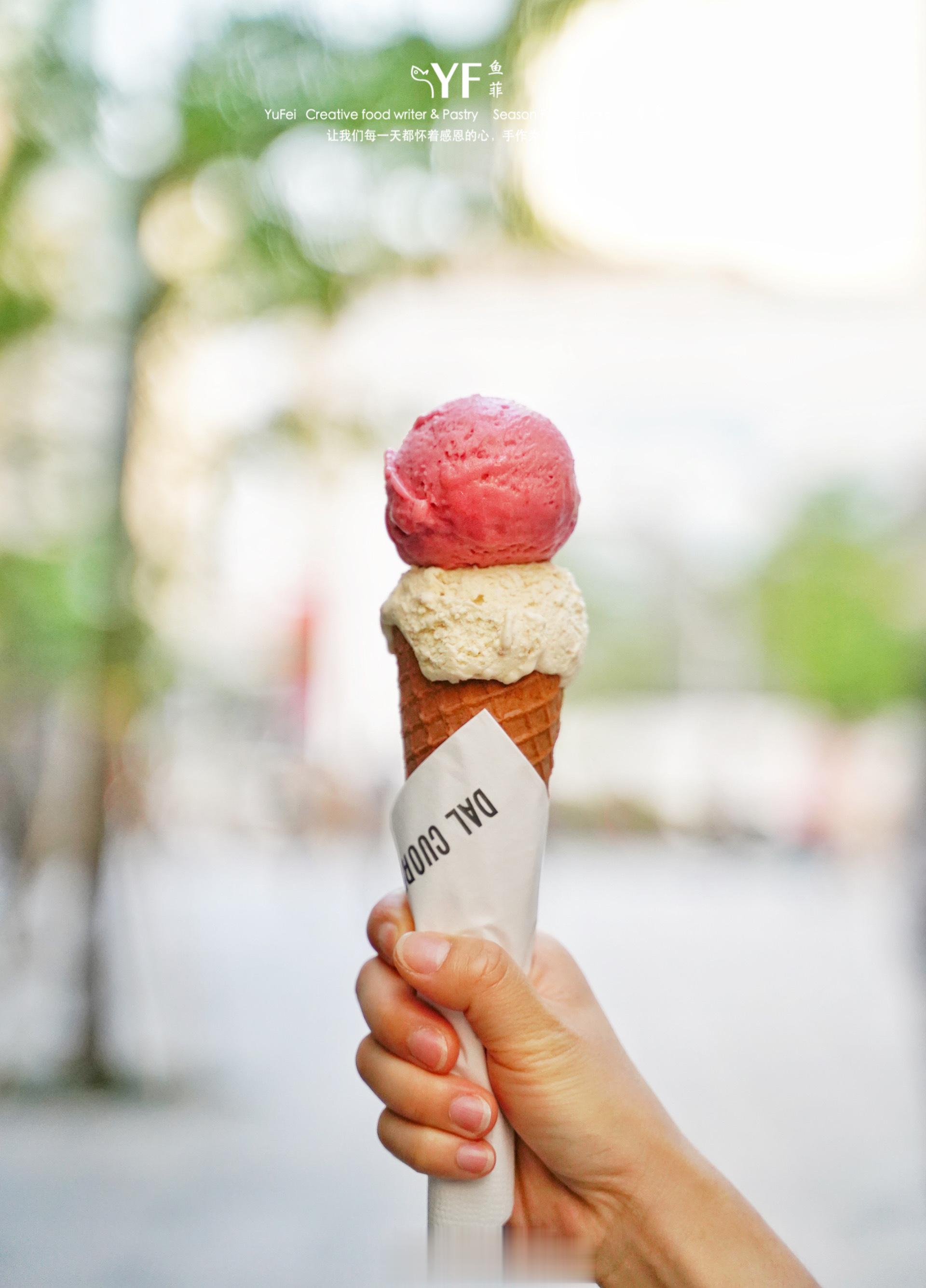 ❤1.第一家是芮欧楼下的DAL CUORE冰淇淋店,不仅口感细腻,口味选择也很多,除了人气的荔枝玫瑰,有上海特色的葱油拌面口味,这次我选的是比较有意思的双球组合。