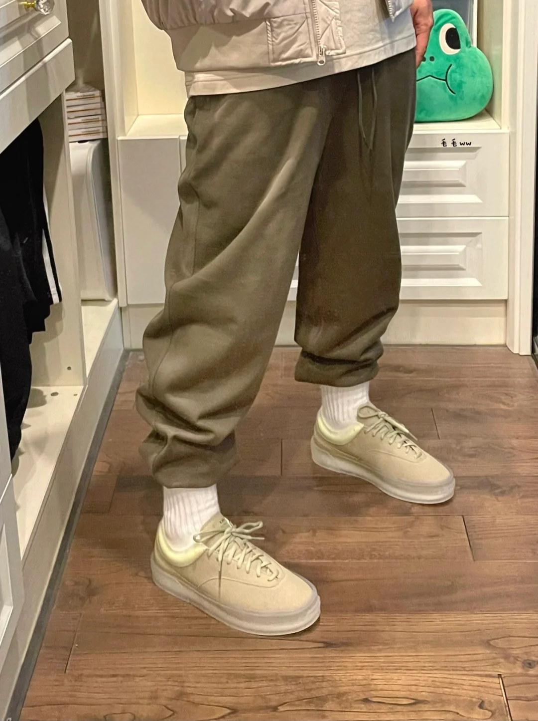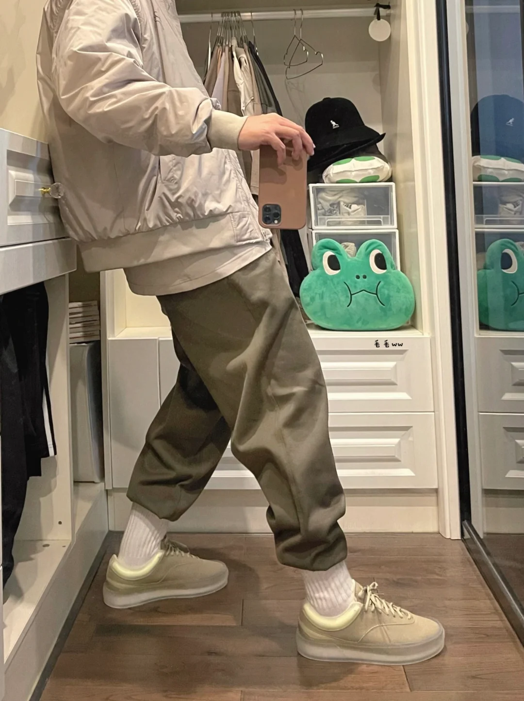-束脚处理的裤装,除了束口裤比较方便,平口裤同样可以,关键在于长袜的扎法 . -棕绿配色一直都是容易搭配的组合,上装卡其棕下装橄榄绿,秋冬就这么试试吧 . —————— . ✏️本人178cm75kg 球鞋尺码265mm(正常EU42) . 💭以上均为我个人观点,不喜勿喷,欢迎讨论。