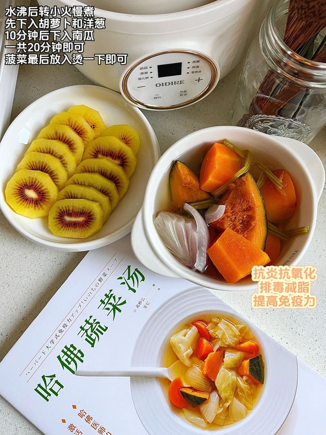 又是一年寒冬季 宝子们慢慢的要减少喝蔬果饮 尽量多喝一些热饮 温暖我们的中国胃 - 今天晚餐就是一例份的哈佛蔬菜汤 抗炎的同时也让入冬后的肠胃暖乎乎~ -