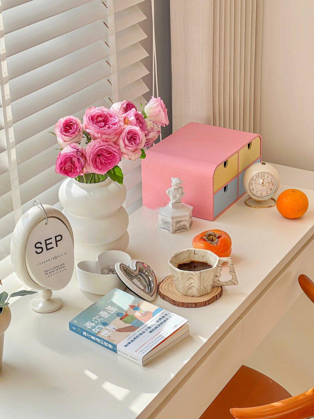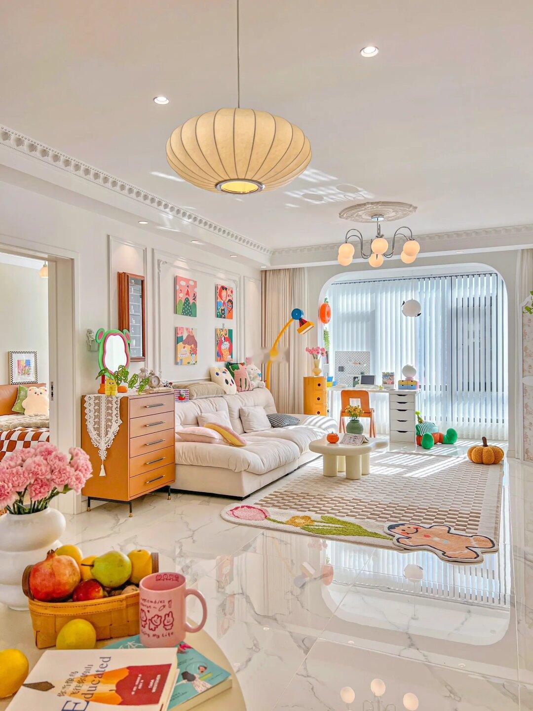 搭配了木色橙色系的小件家具和彩色小装饰物