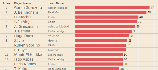 进球和助攻不足以体现贝林厄姆的全面性,以下是他与西甲不同位置球员的数据(wysc