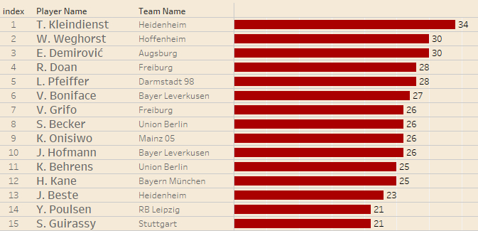 本赛季五大联赛反抢次数最多的前锋: