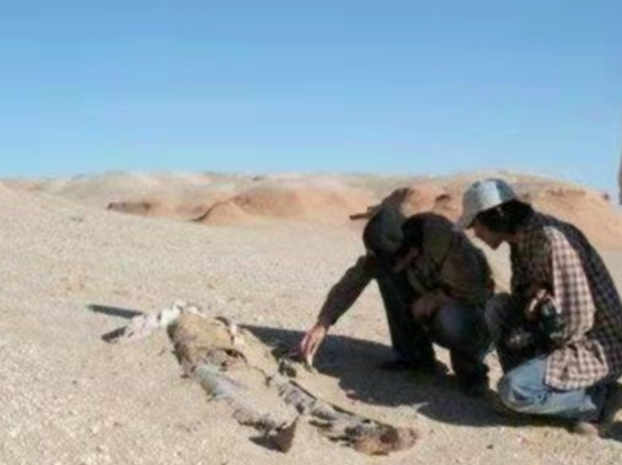 这张照片拍摄于2016年,探险队在罗布泊的沙漠里,发现了一具干尸,根据他身上残留的遗物,终于发现了他惊人的身份。