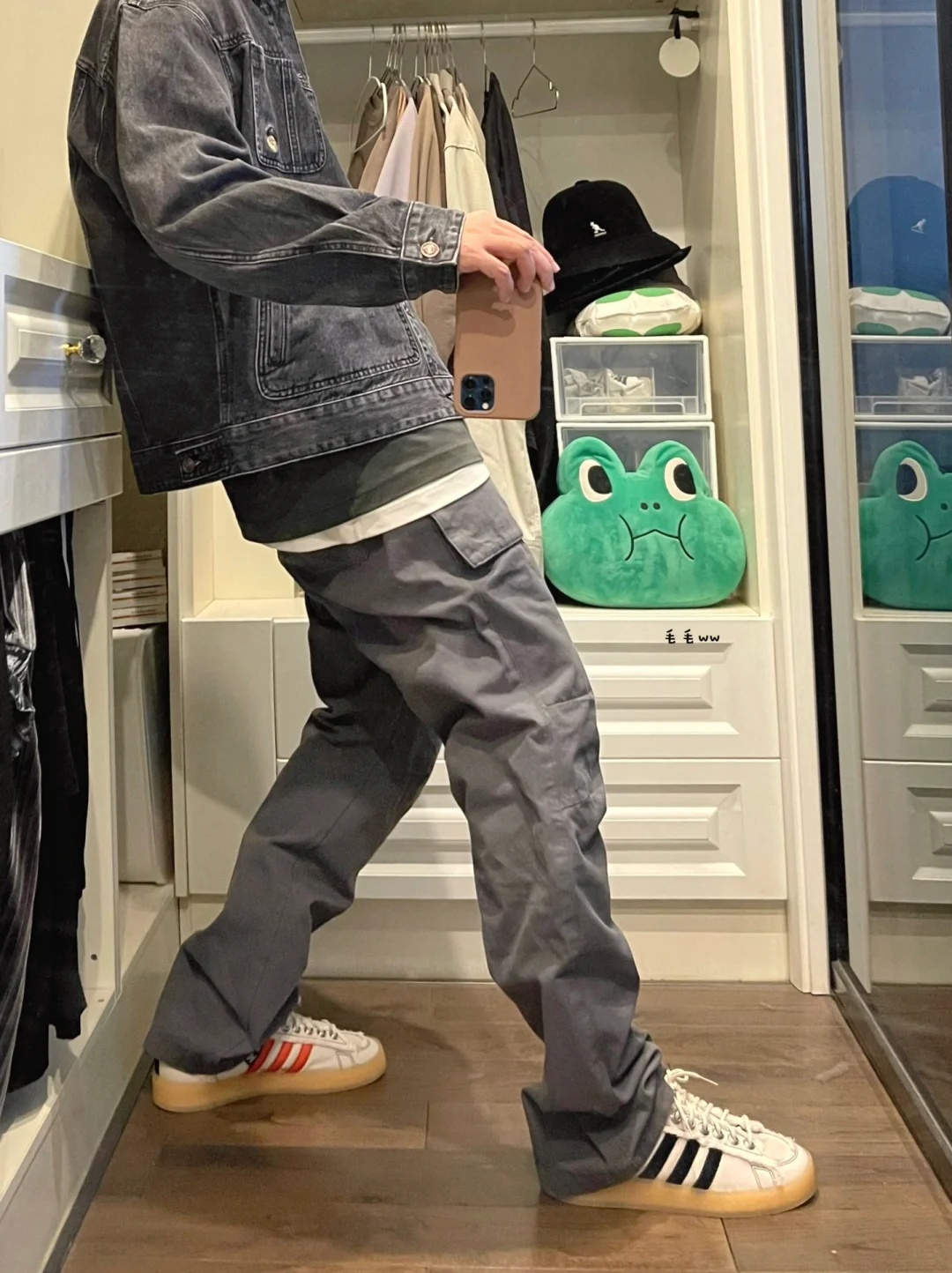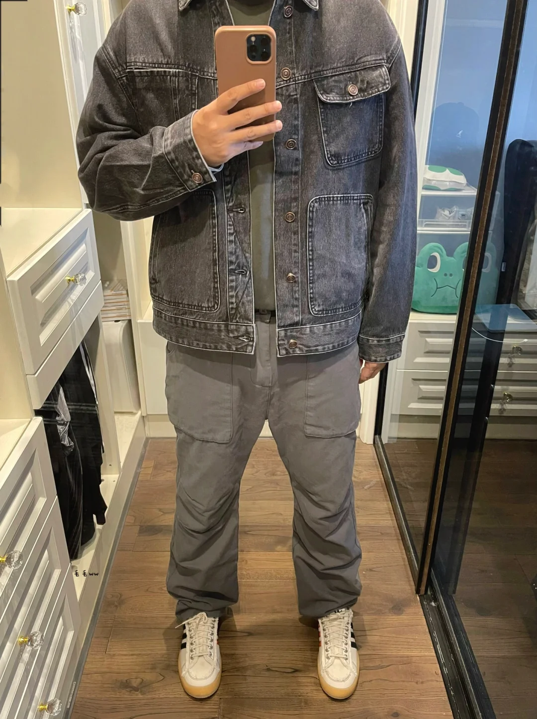 -高级青灰色,一套显瘦穿搭,一定要试试;丹宁外套搭配直筒裤,越简洁越有效;短内搭的配合,也在显高显瘦的视觉效果上加分 . -Campus 80s,sftm这波入了黑白双色,大家更喜欢哪双呢;个人更倾向黑色,不太感冒生胶底,但是白鞋先天优势,越穿越耐看 . —————— . ✏️本人178cm75kg 球鞋尺码265mm(正常EU42) . 💭以上均为我个人观点,不喜勿喷,欢迎讨论。