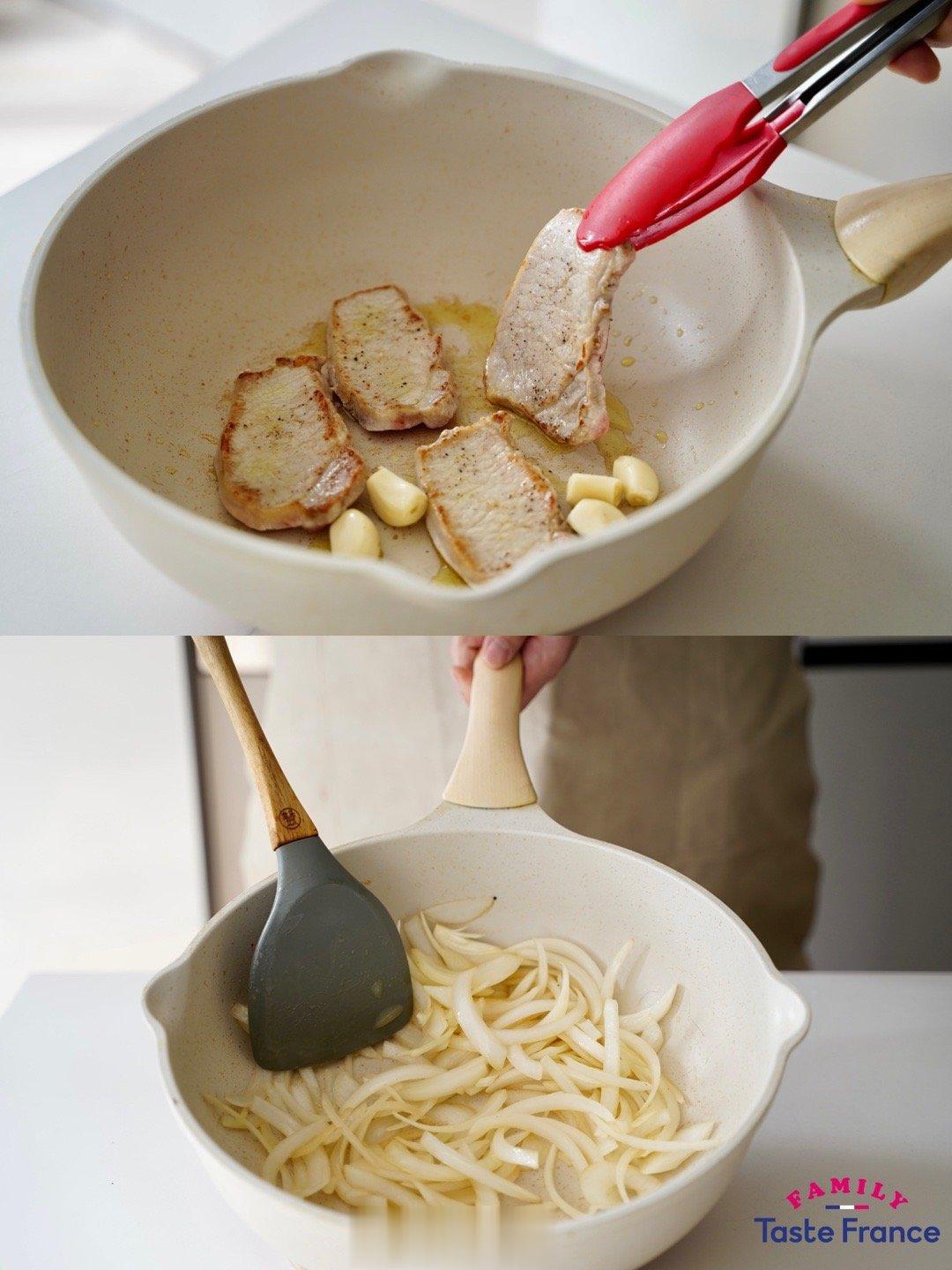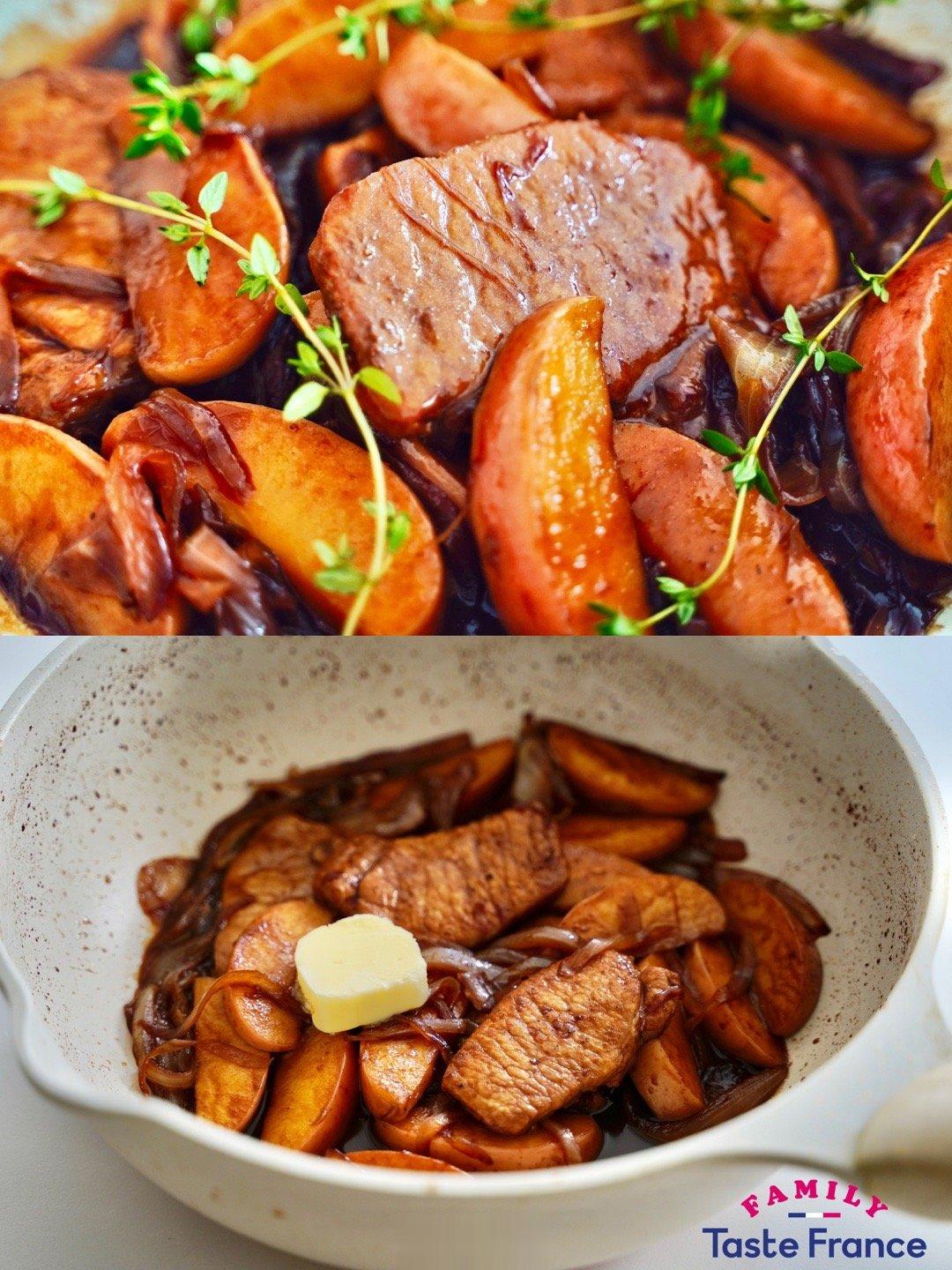 这道菜是来自法国布列塔尼的典型家庭菜肴。布列塔尼是一个以苹果和养猪业闻名的法国西北部地区,所以将苹果与猪肉融合的这道菜,在当地几乎每个家庭都会在盛大的节日制作。