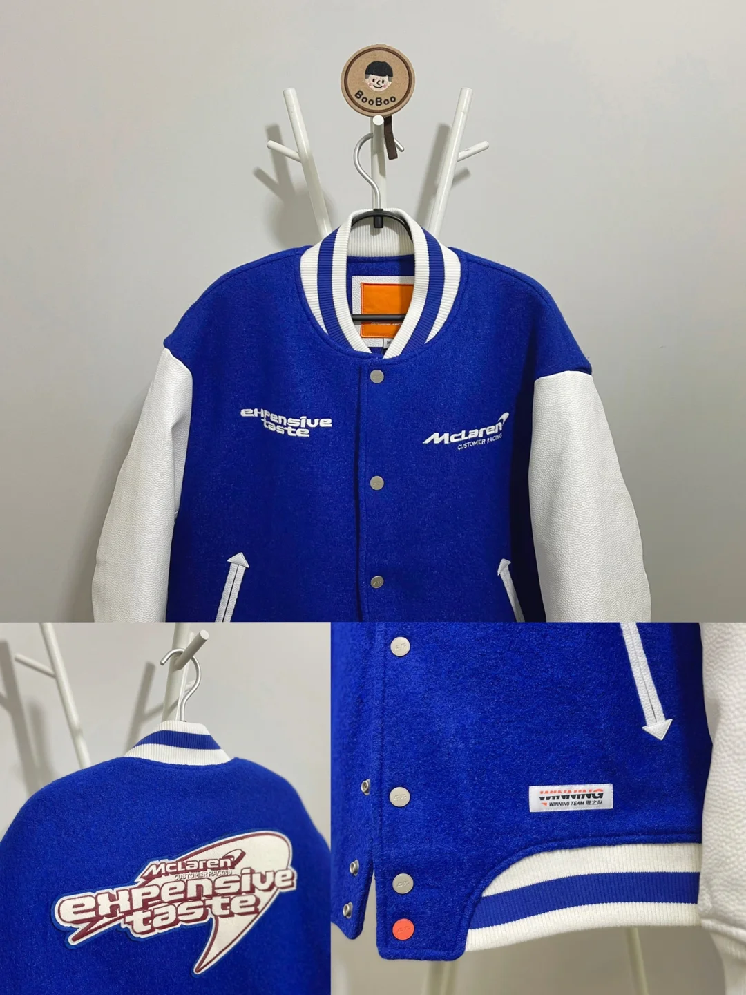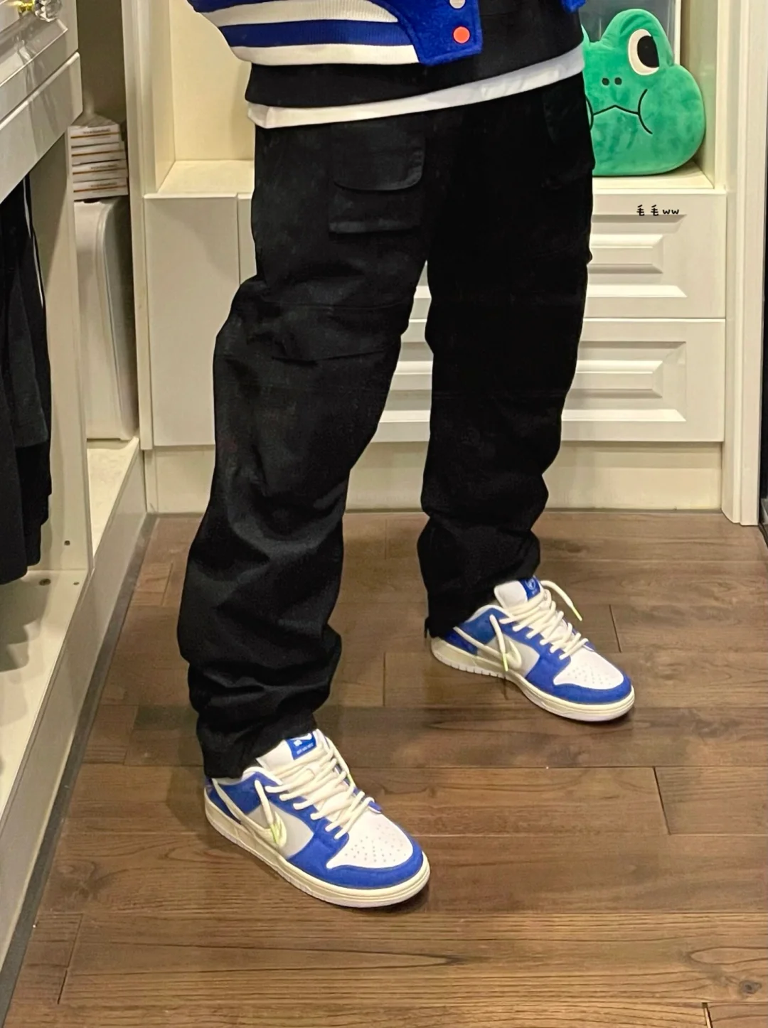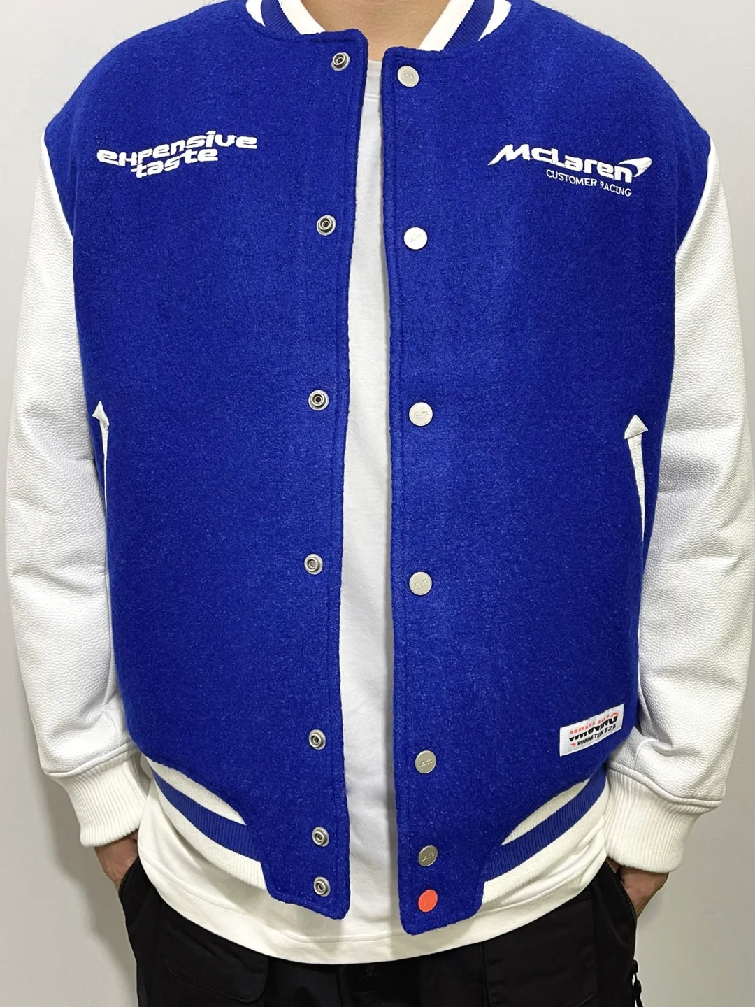 -谁能拒绝蓝色系穿搭,黑白色系非常有效,高饱和度蓝色增加辨识度 . -棒球夹克想要穿好看,磅数一定要够;内里夹棉,皮袖瞬间提升质感 . —————— . ✏️本人178cm75kg 球鞋尺码265mm(正常EU42) . 💭以上均为我个人观点,不喜勿喷,欢迎讨论。