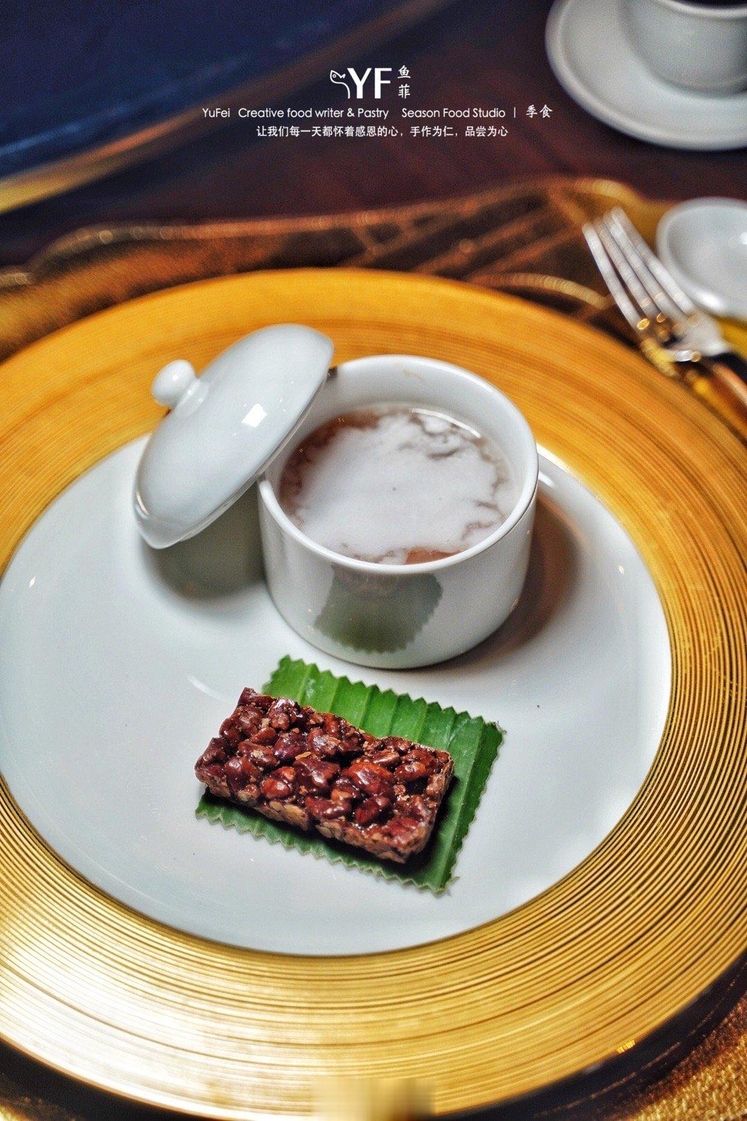 🍐收口的甜品是用山西玉露香梨清榨的汤汁,配上打发的椰汁泡沫,烩以燕窝炖制而成,清润滑爽,配上主厨自制的山核桃糖,甜香酥脆。再来上一口慢慢80后回忆的大白兔奶糖十三幺,来年也是取个逢考必🀄️,工作皆顺的寓意