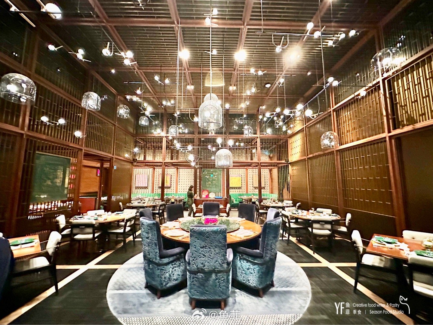 时尚摩登与复古绿糅合的环境,当主厅现场响起曲调悠扬的古筝曲调,似有一种半入清风半入喉,清风也染人间味的雅致。食客若是商务宴请或家人相聚想要私密一些,亦可选择包厢,听着复古收音机里早期华语的经典歌曲,体验一回上世纪沉浸式老上海的怀旧氛围。新中式古典的空间陈设里,细节亦让餐厅透着江南水乡的灵动。