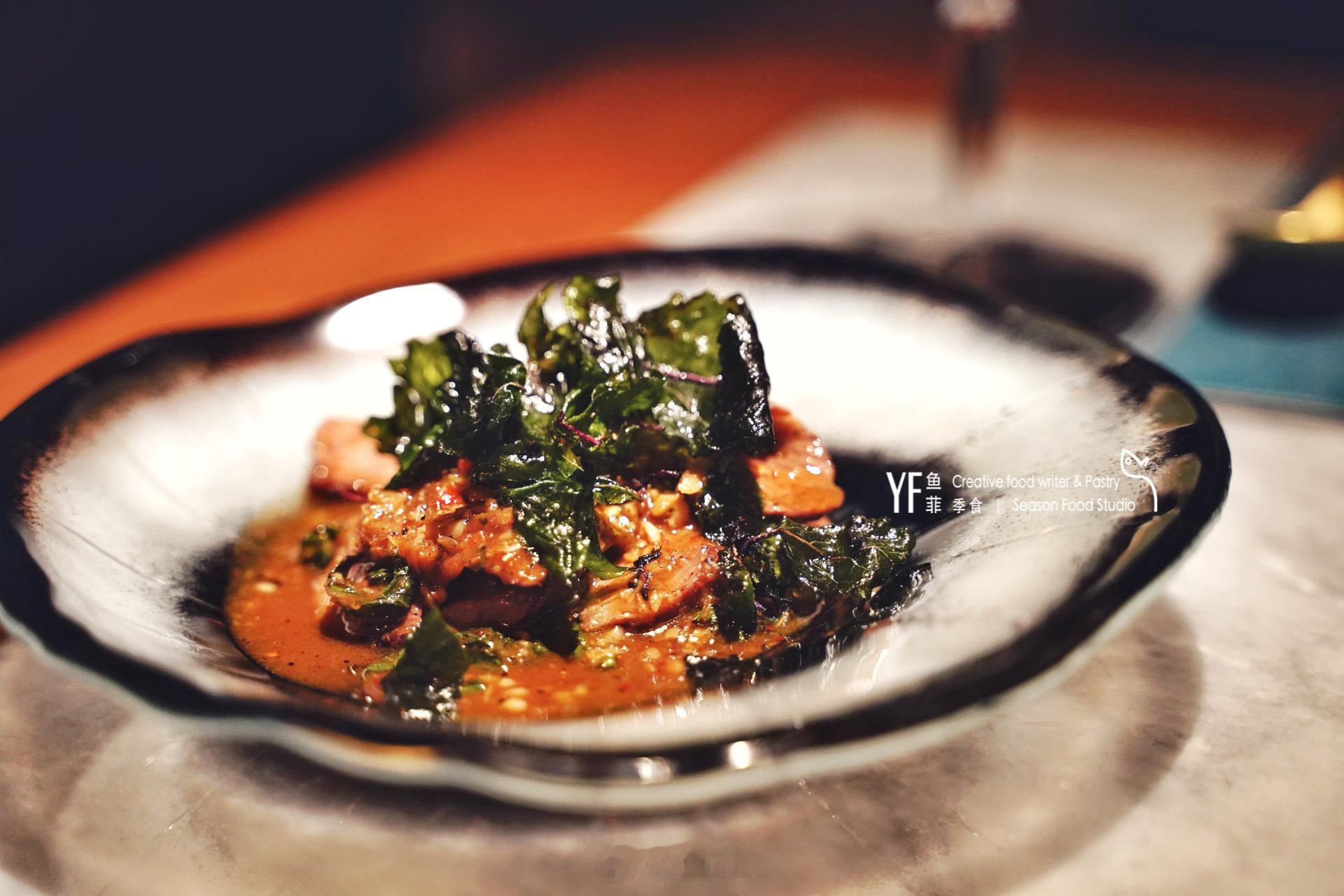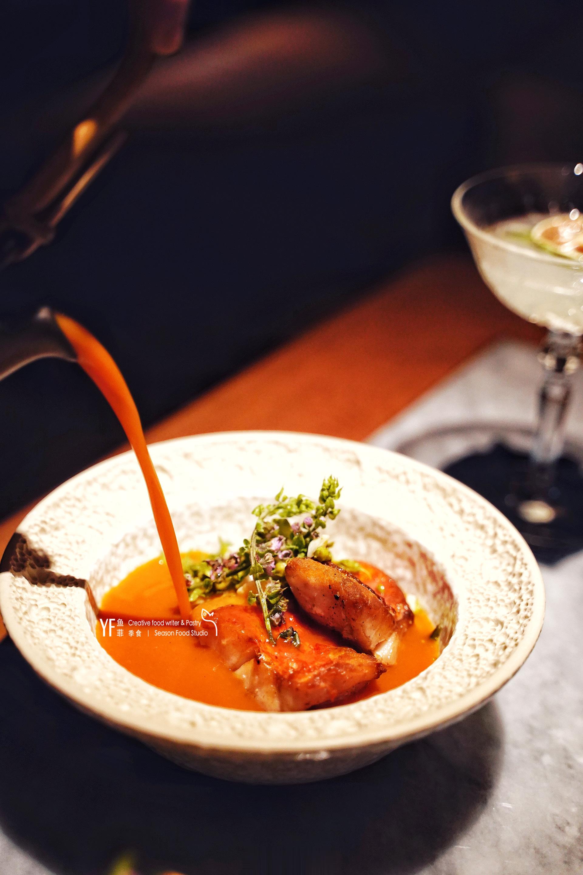 本以为是一道平平无奇的海鲜沙拉,没想到特制的酱汁把扇贝润味后,滋味甚妙,里面新鲜的柚子肉和烤过的琥珀核桃,于口中时而脆香酥甜,时而甜酸爆汁,将扇贝的海之甘甜千娇百媚的意味统统浅缓而出。