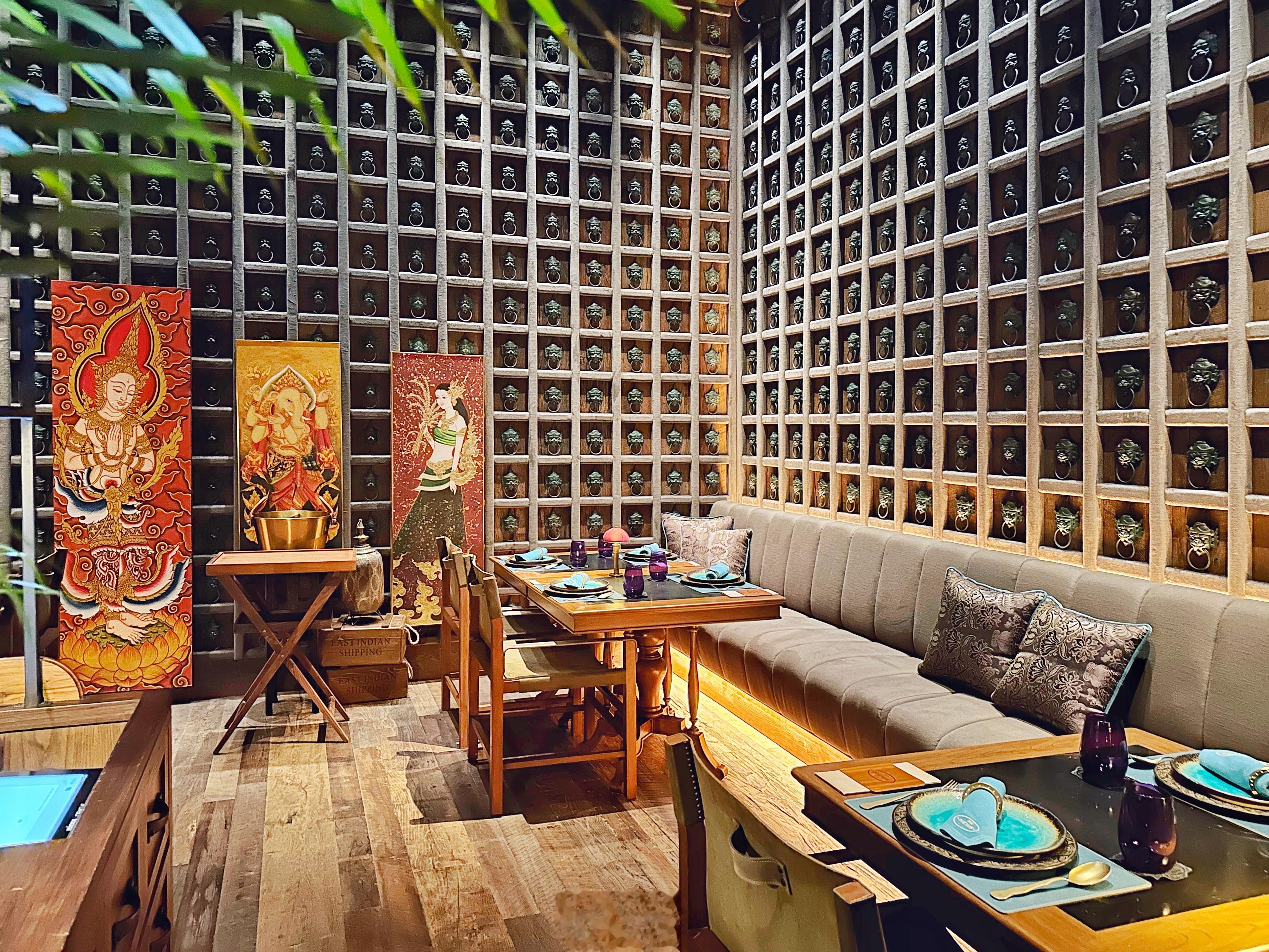 餐厅入口神秘莫测,拉动马鞭,隐秘大门缓缓而开,满眼特色泰风的装饰与香芬,让人瞬间有种穿越到泰国的闲适。