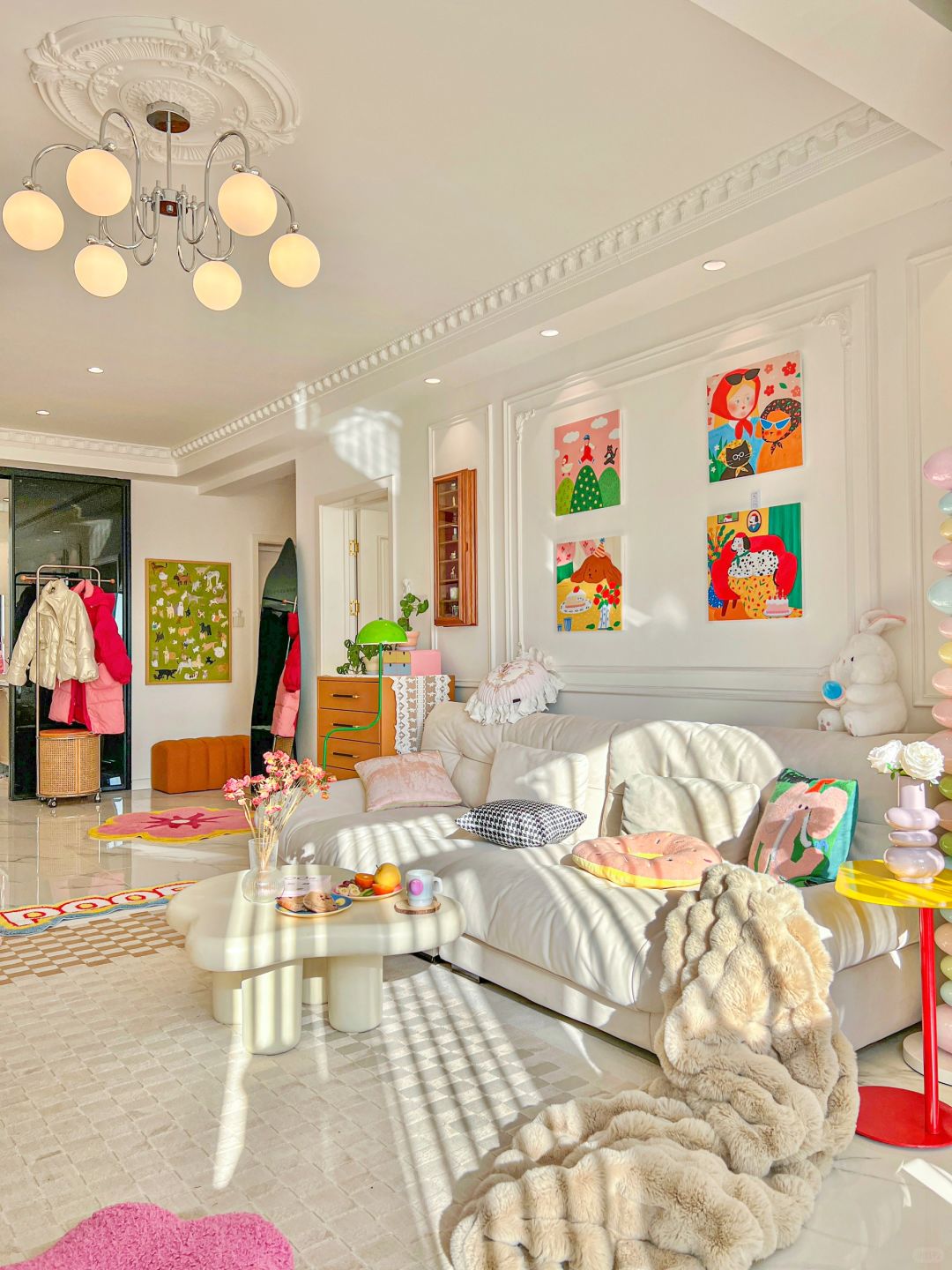朋友和我说, 如果可以每天住在我家,不敢想象自己能有多开朗! 一切都刚刚好,舒服自由又快乐~ 冬天的暖阳照进屋子里的每一个角落 蝴蝶结吊灯显得愈发精致优雅 周末的午后窝进温暖的沙发里 两个人的小生活 目光所及都是浪漫和美好😊~