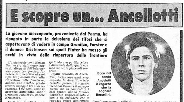 1977/78赛季,在帕尔马(意丙)的第二个赛季,不到19岁的安切诺蒂首发21次打进8球。1978年5月20日,安切诺蒂得到了为国际米兰出场的机会,友谊赛对阵柏林赫塔。