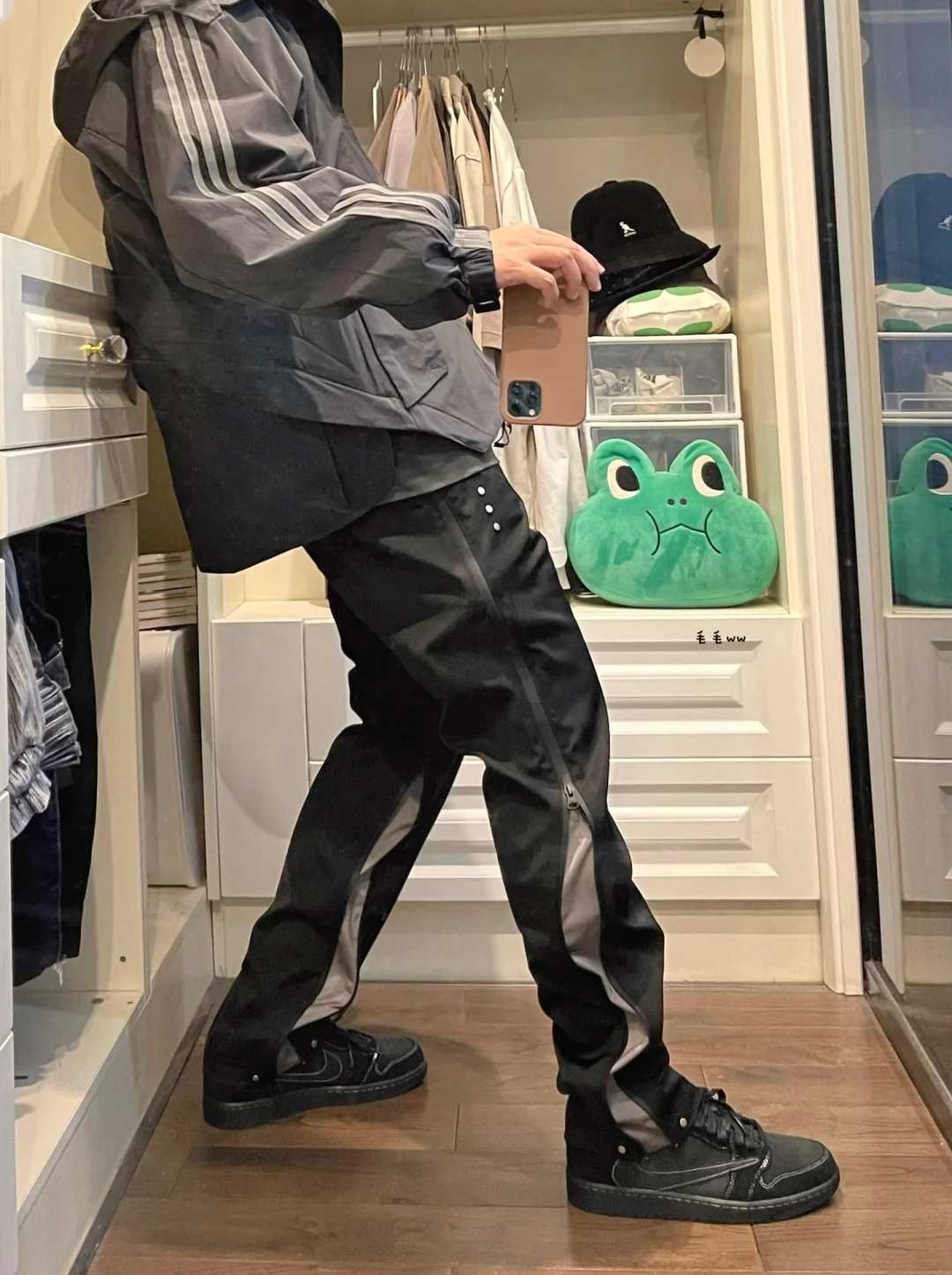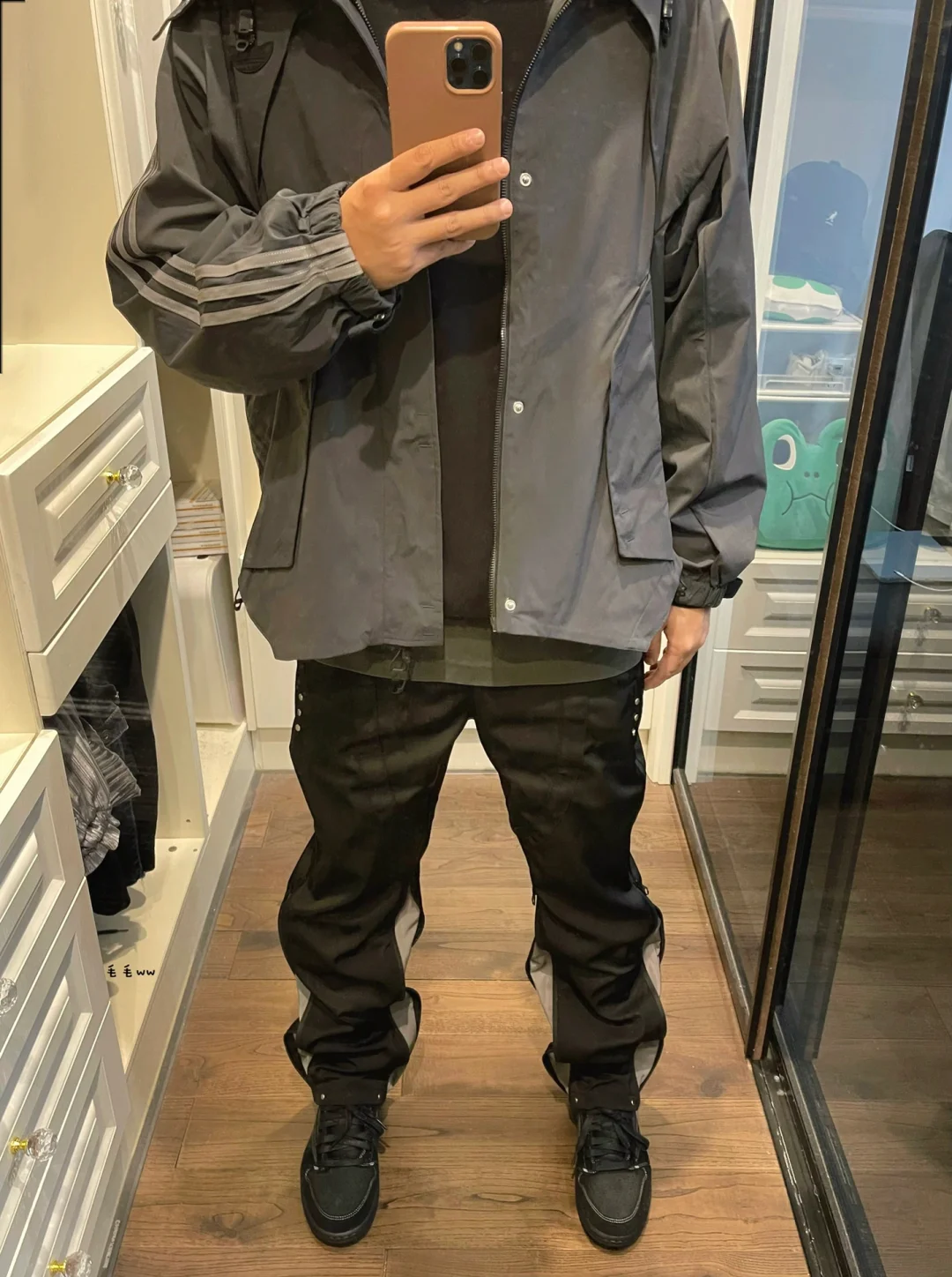 -众多入冬穿搭中,冲锋衣是兼具实用性的 -显瘦黑灰色系,相较于全黑更具有层次感 -工装冲锋裤,双侧拉链可以营造波浪堆叠 . —————— . ✏️本人178cm75kg 球鞋尺码265mm(正常EU42) . 💭以上均为我个人观点,不喜勿喷,欢迎讨论。
