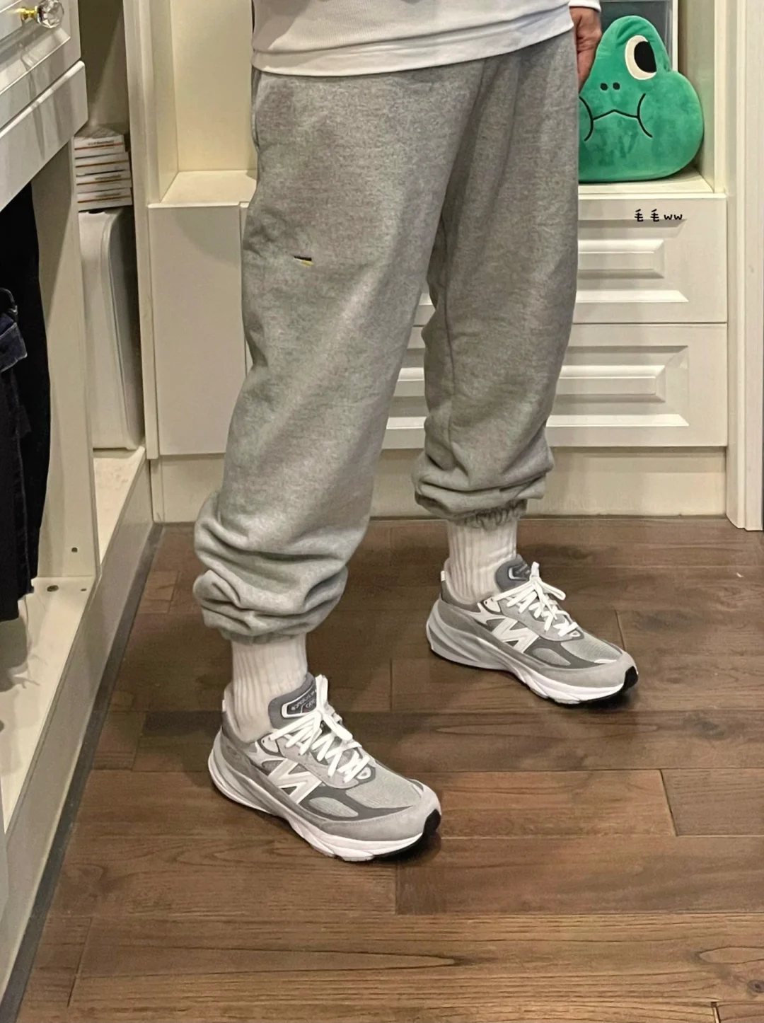 -灰色系穿搭,复古味儿太足了;伴随低饱和度干净效果的同时,又不像白色那么不耐脏 . -一套卫衣裤的懒人搭配,就能完美匹配复古跑鞋;穿了一年多后,V6终于越看越顺眼了 . —————— . ✏️本人178cm75kg 球鞋尺码265mm(正常EU42) . 💭以上均为我个人观点,不喜勿喷,欢迎讨论。